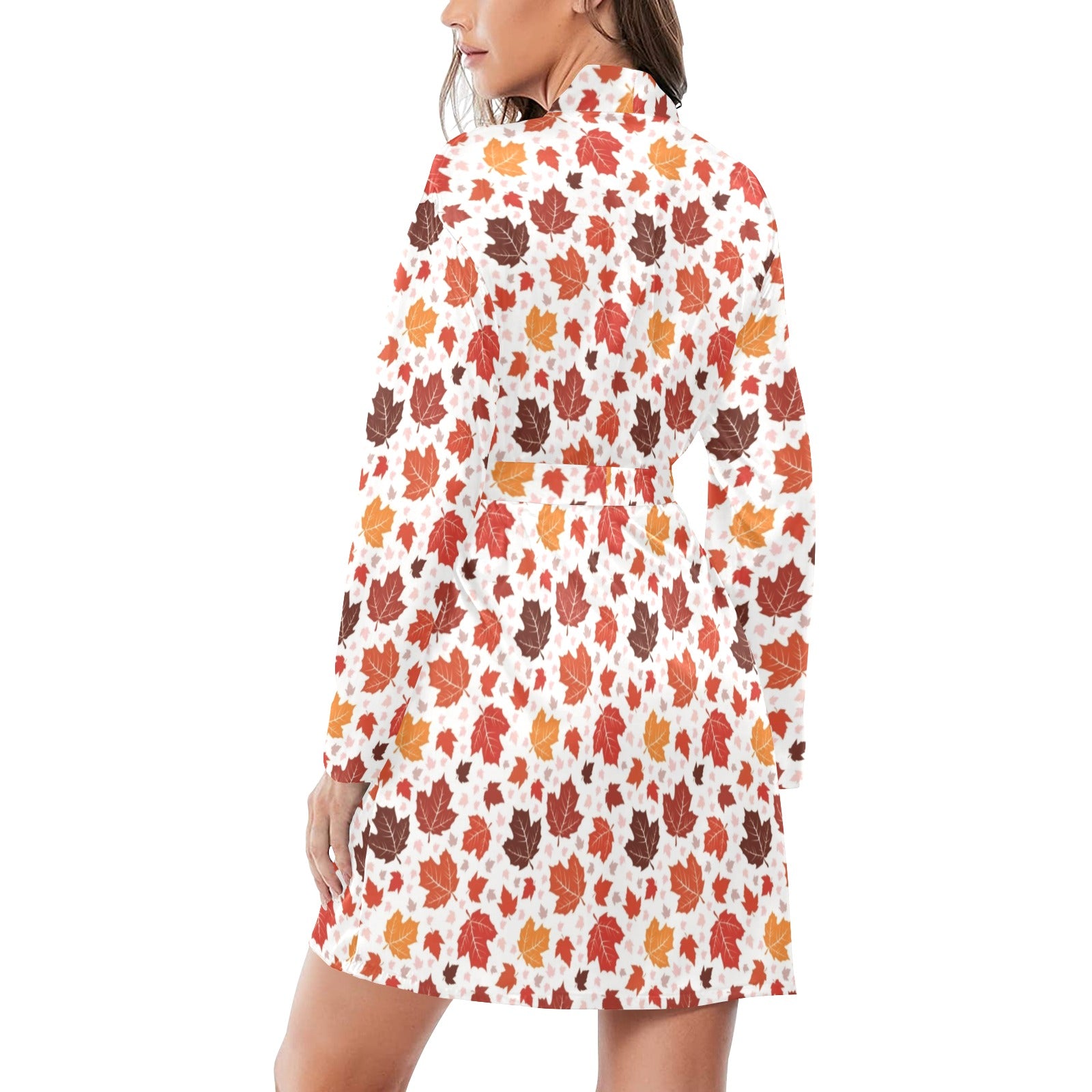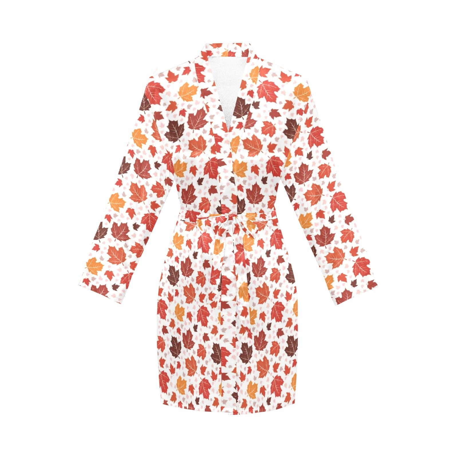 Colorful Maple Leaf pattern Women's Long Sleeve Belted Night Robe