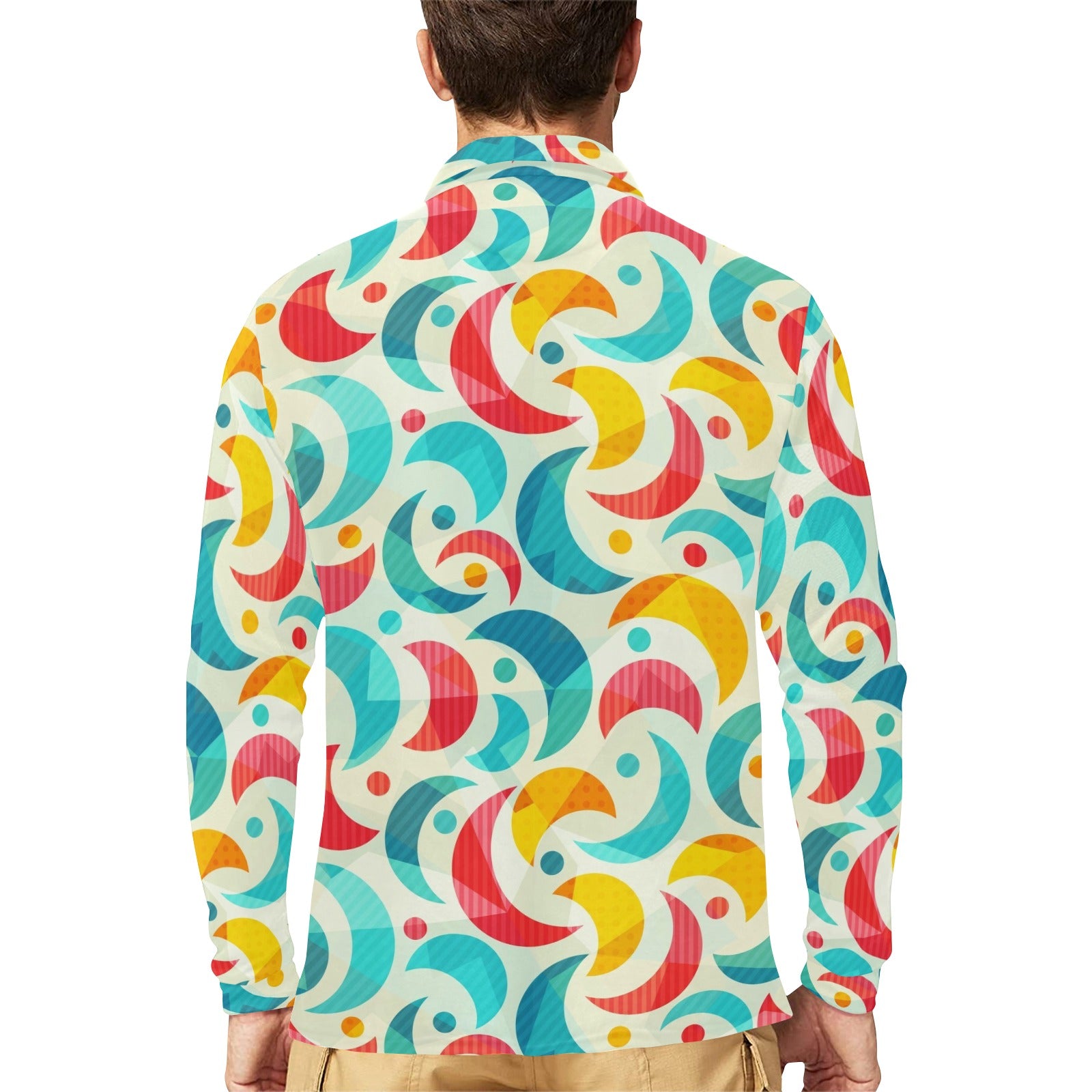 Colorful moon pattern Men's Long Sleeve Polo Shirt