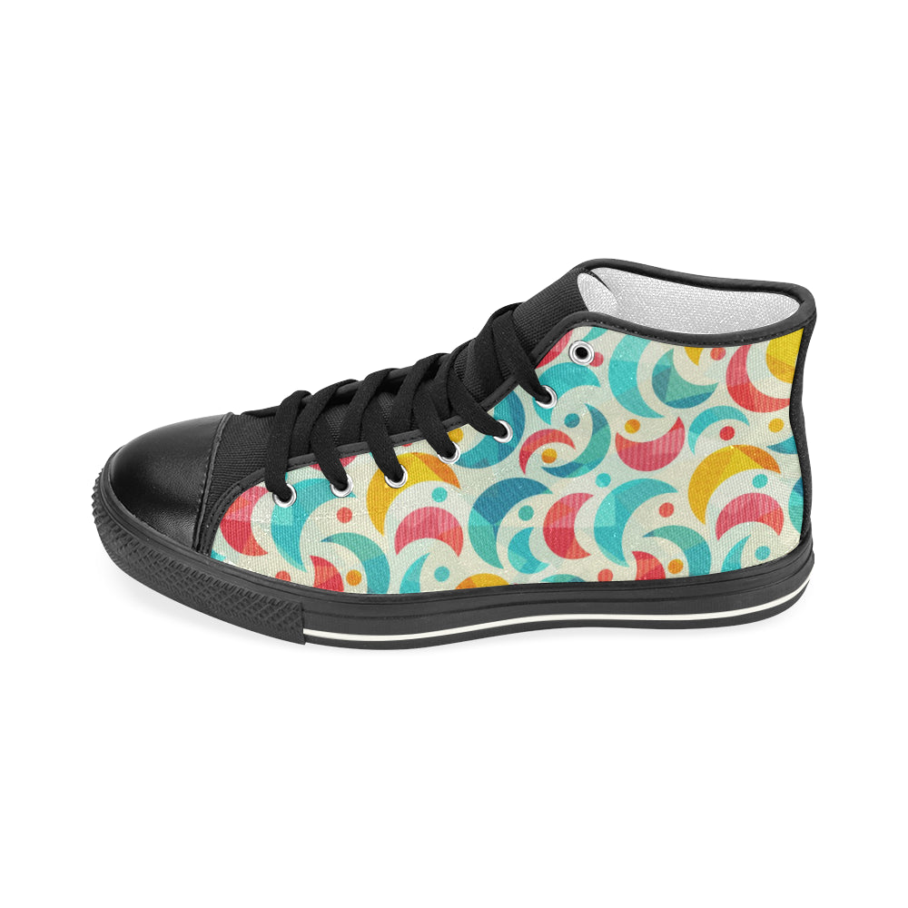 Colorful moon pattern Women's High Top Canvas Shoes Black