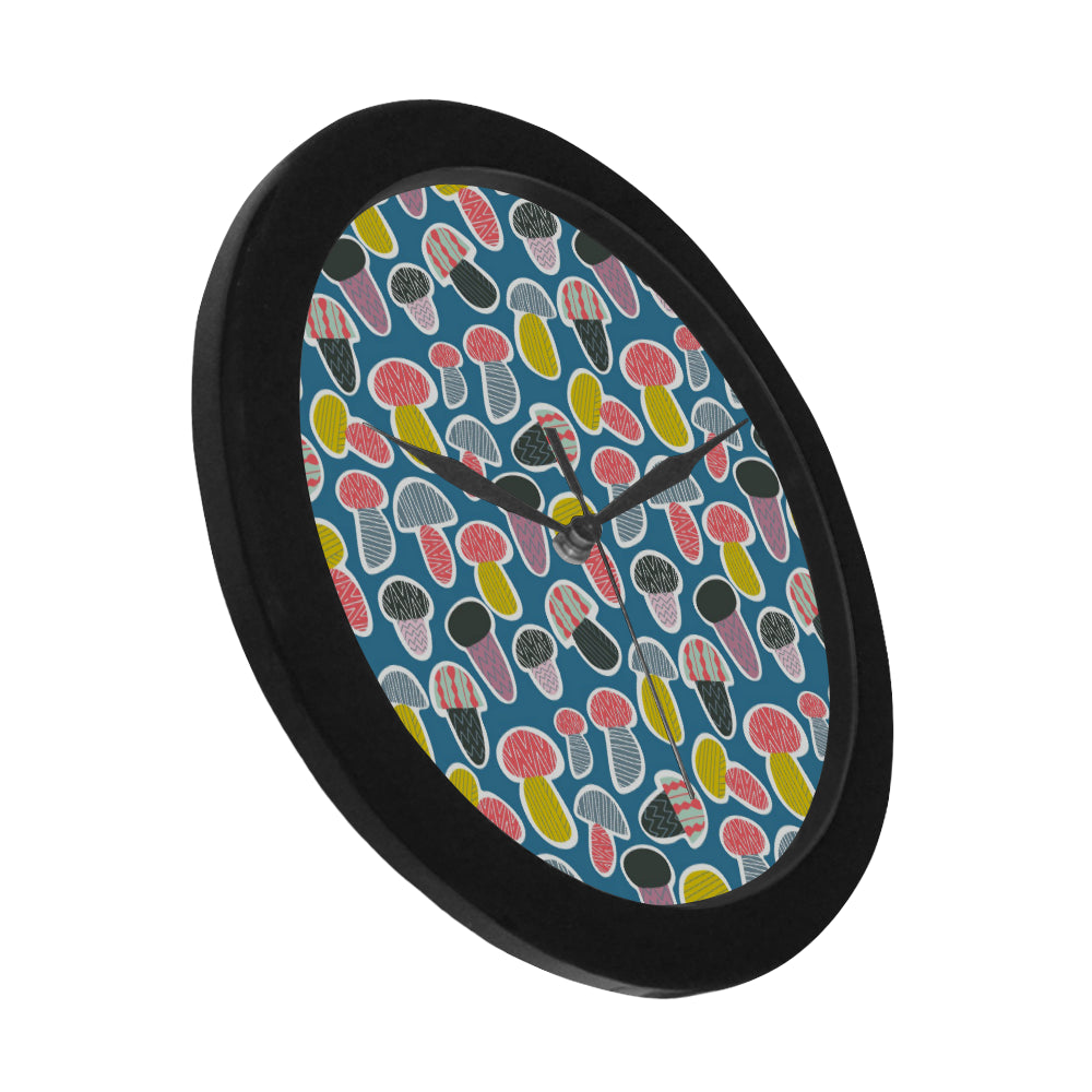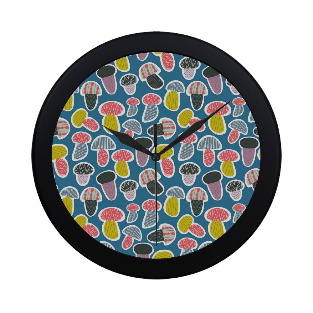 Colorful mushroom design pattern Elegant Black Wall Clock