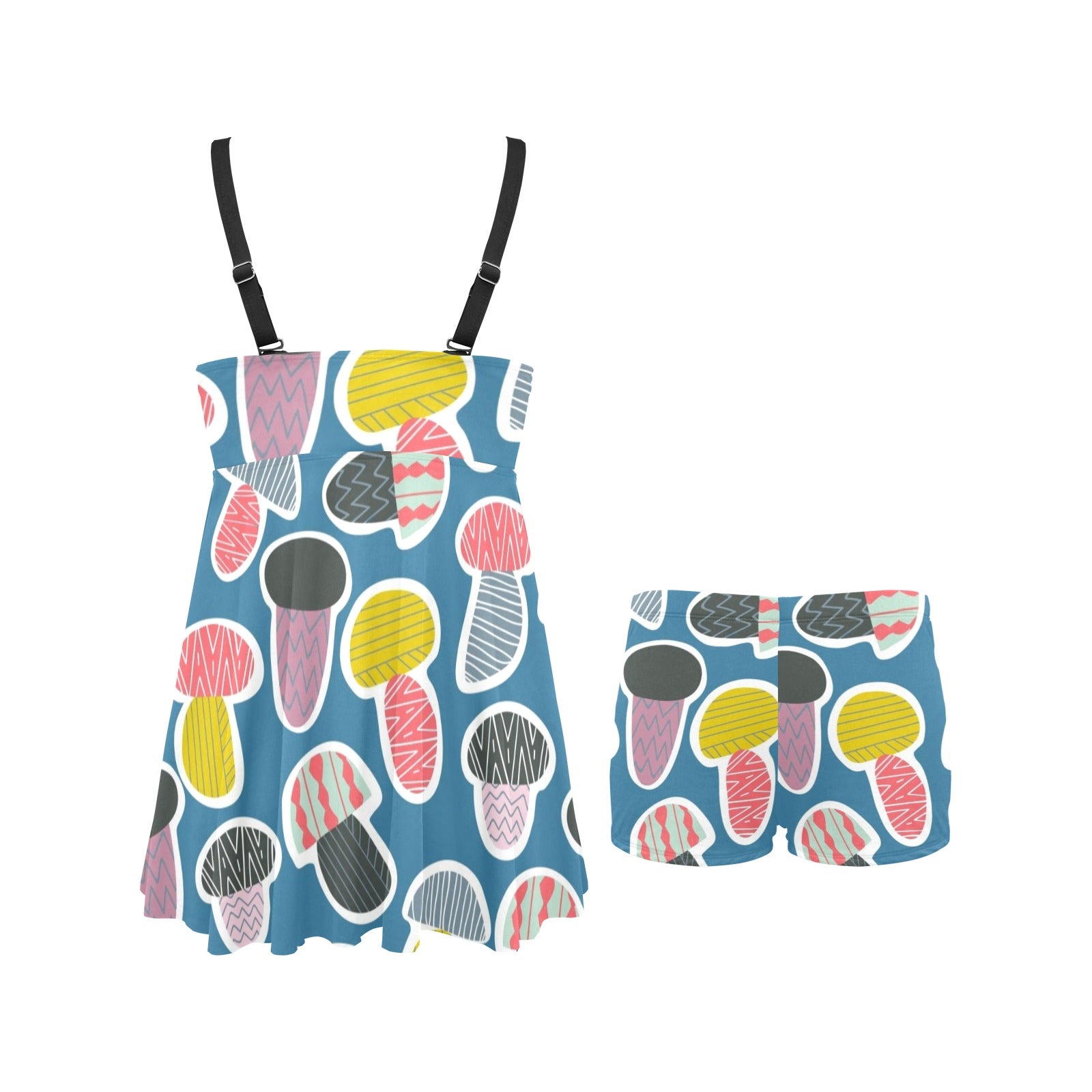 Colorful mushroom design pattern Chest Sexy Pleated Two Piece Swim Dress