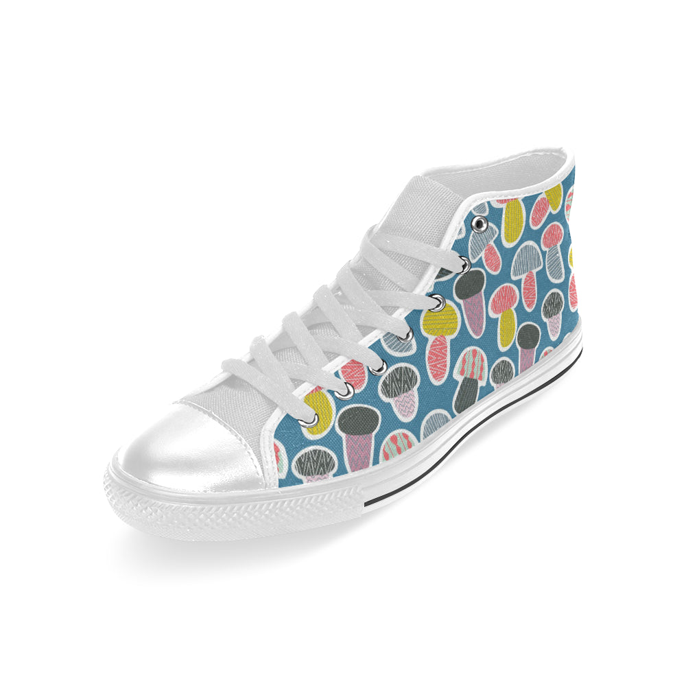 Colorful mushroom design pattern Men's High Top Canvas Shoes White