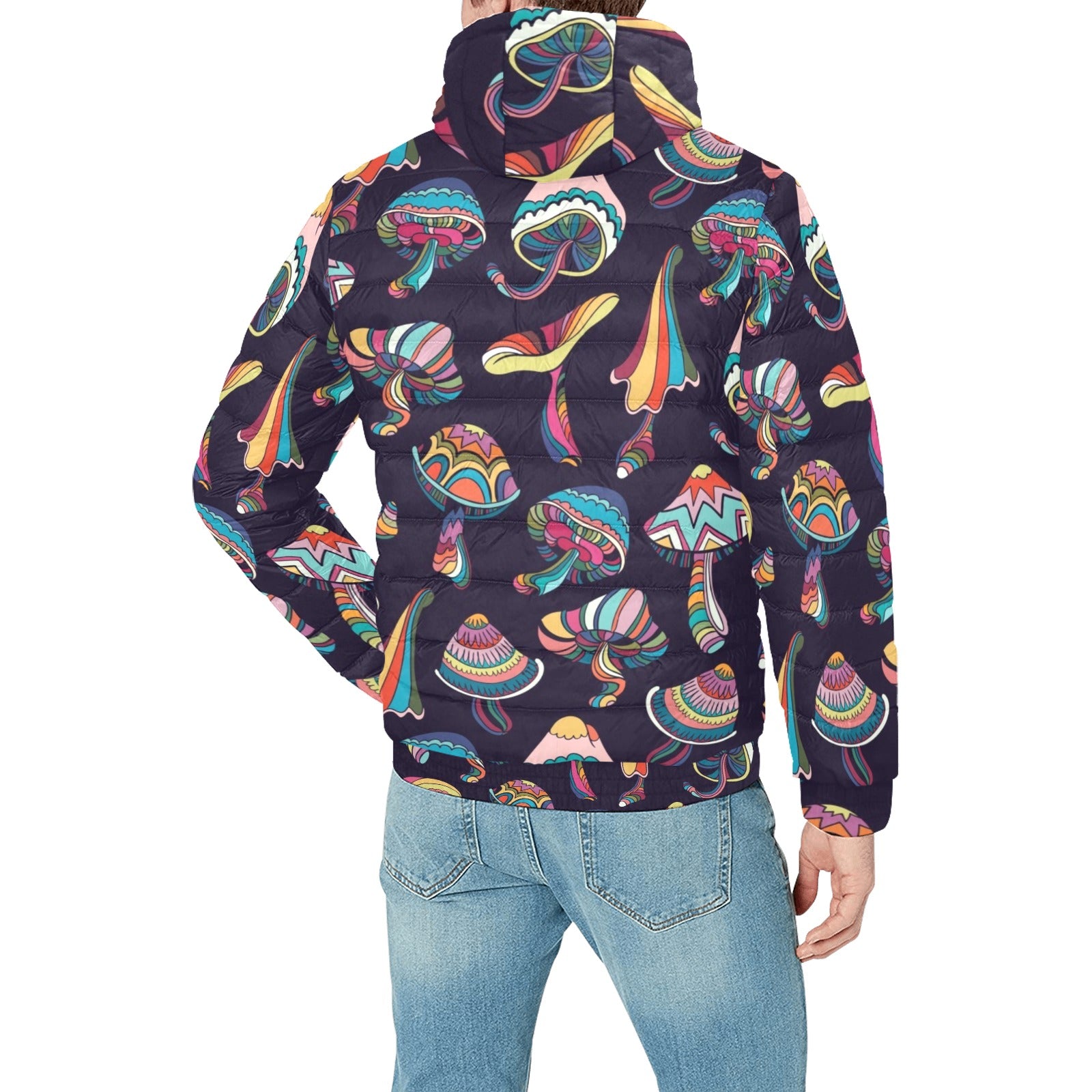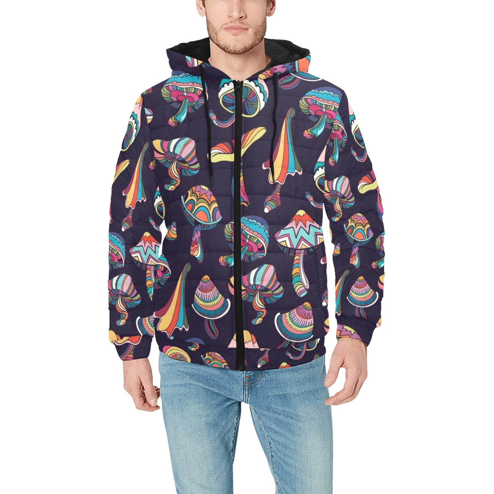 Colorful mushroom pattern Men's Padded Hooded Jacket