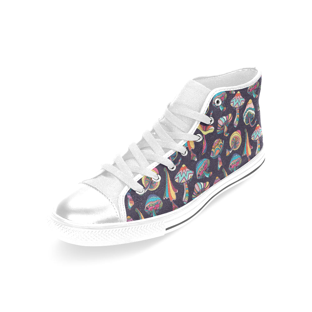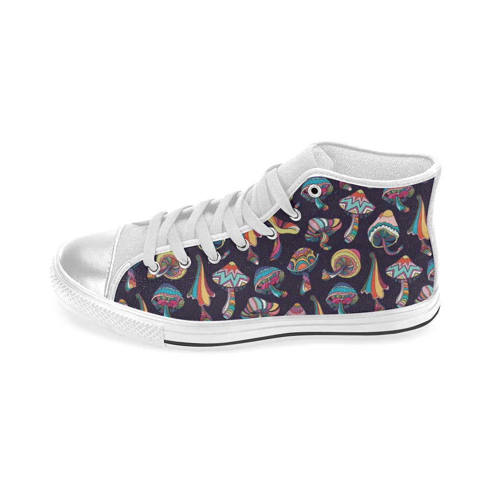 Colorful mushroom pattern Women's High Top Canvas Shoes White