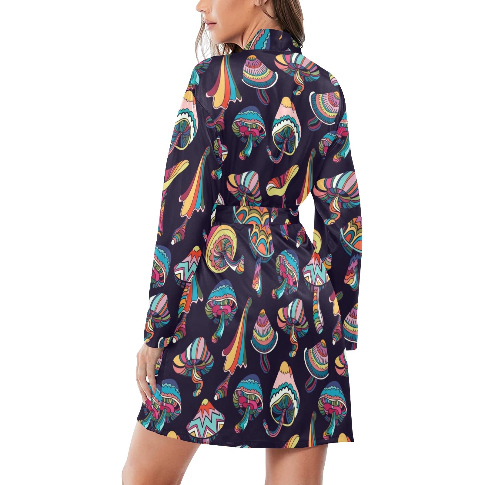 Colorful mushroom pattern Women's Long Sleeve Belted Night Robe