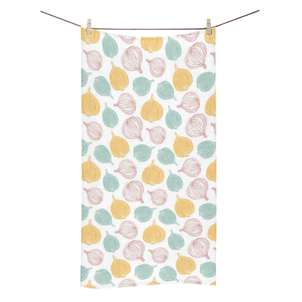 colorful onions white background Bath Towel 30"x56" is a uniqued design and limited item. It made to order, hand printed, and sewn with love in our factory.