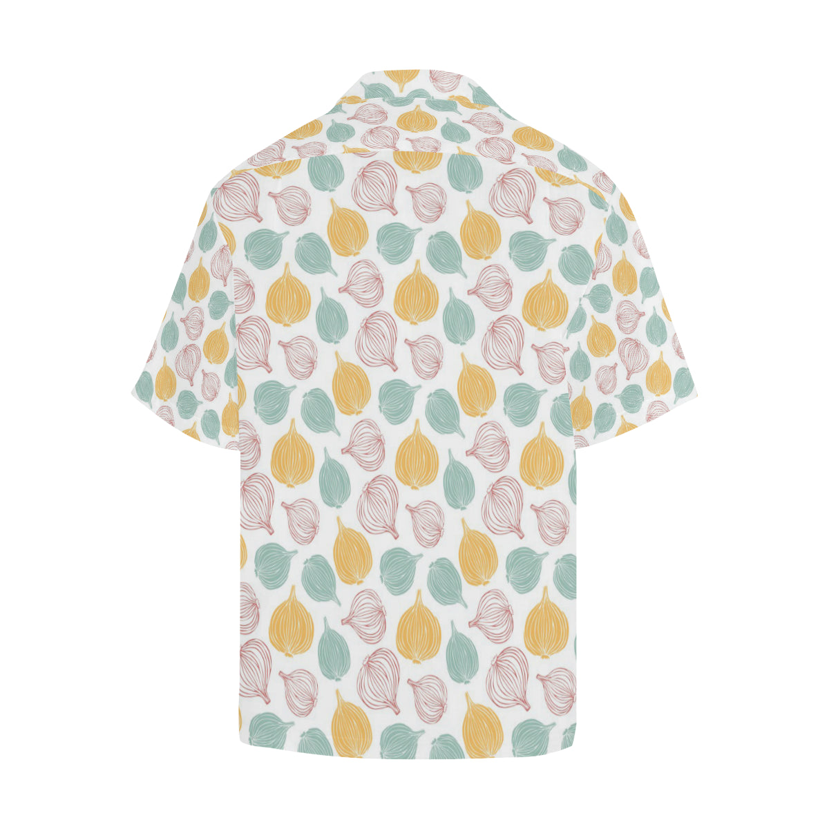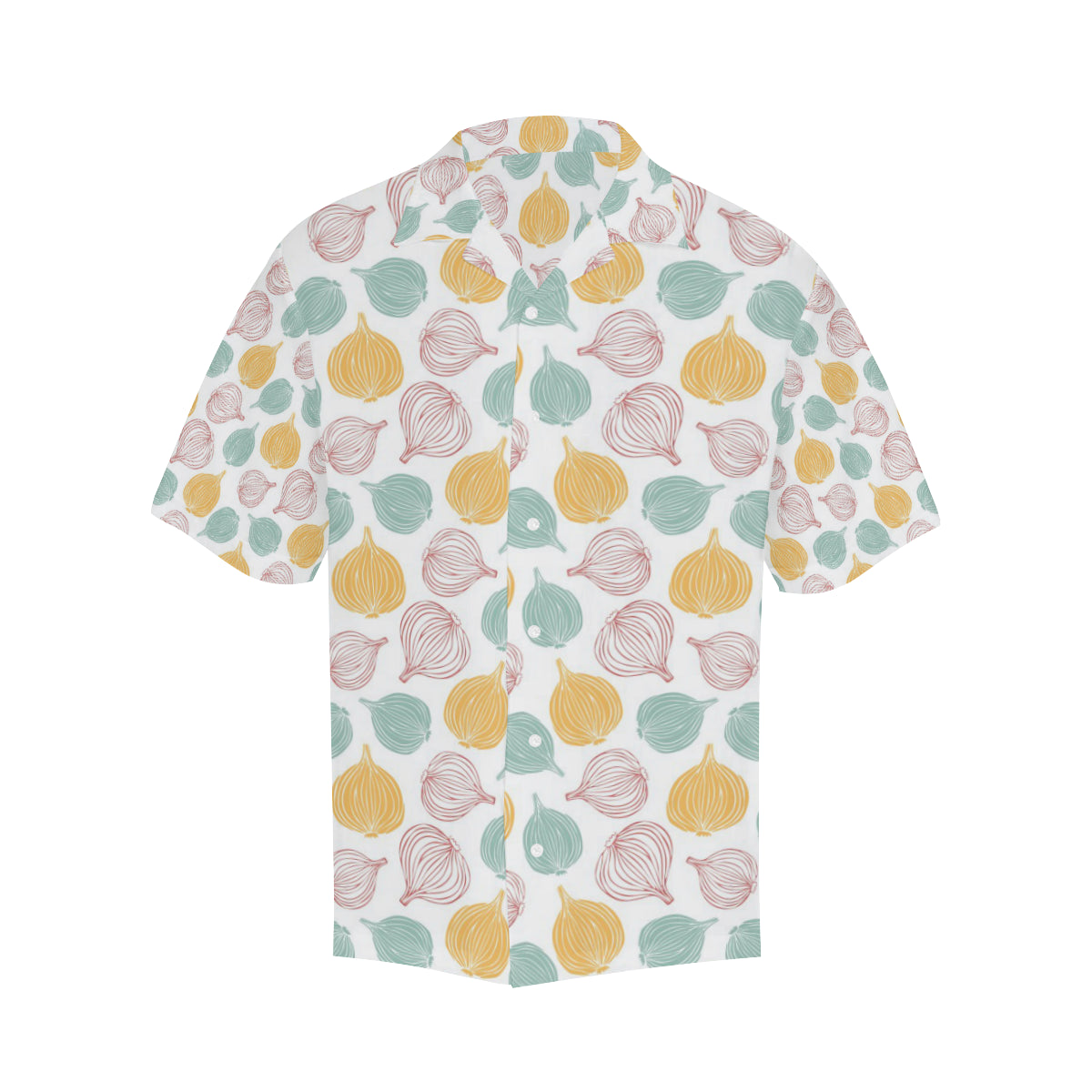 colorful onions white background Men's All Over Print Hawaiian Shirt is a uniqued design and limited item. It made to order, hand printed, and sewn with love in our factory.