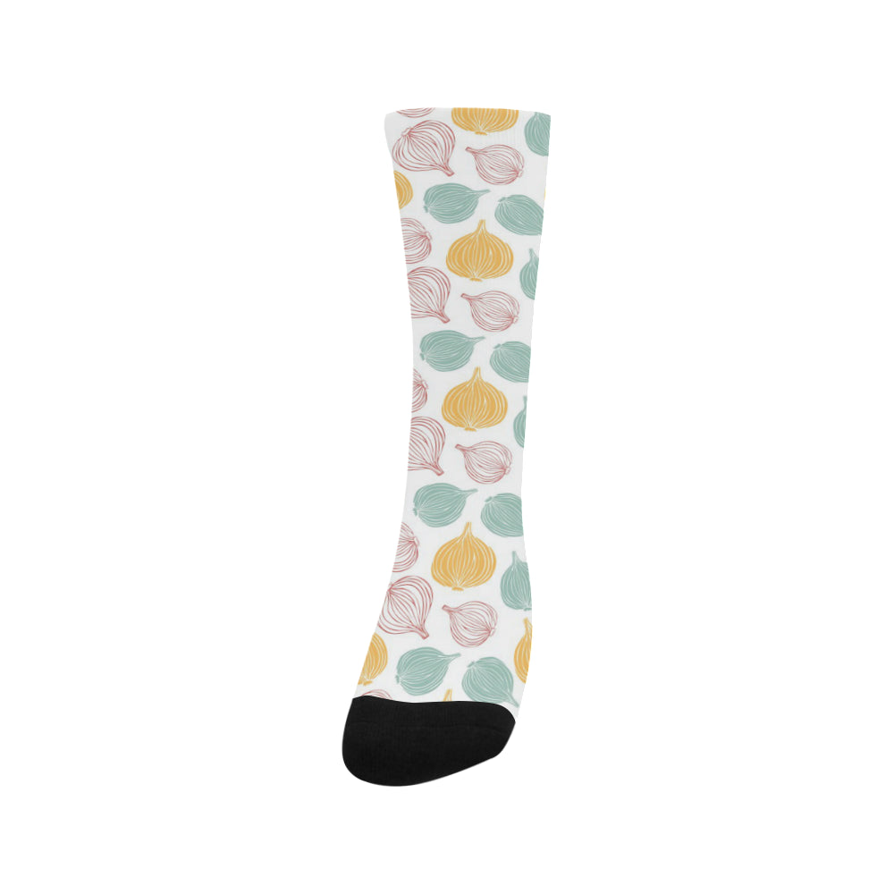 colorful onions white background Crew Socks are uniqued design and limited item. It made to order, hand printed, and sewn with love in our factory.
