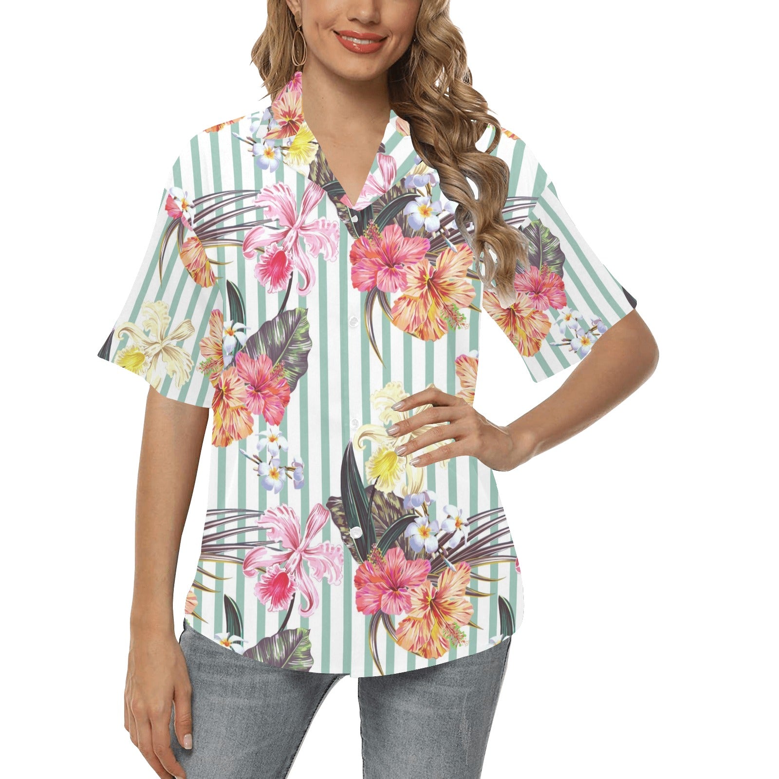 Colorful orchid flower pattern Women's All Over Print Hawaiian Shirt