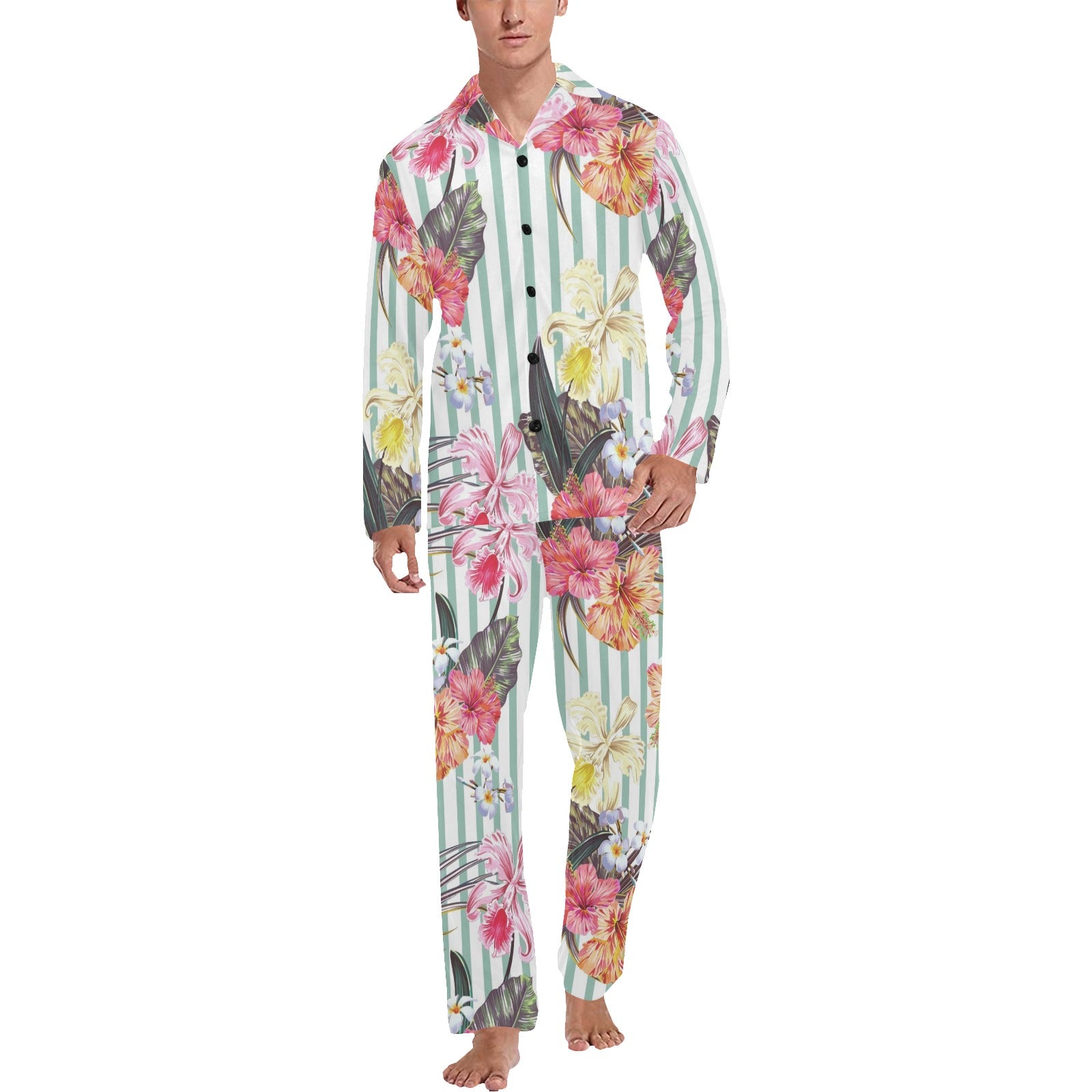 Colorful orchid flower pattern Men's Long Pajama Set