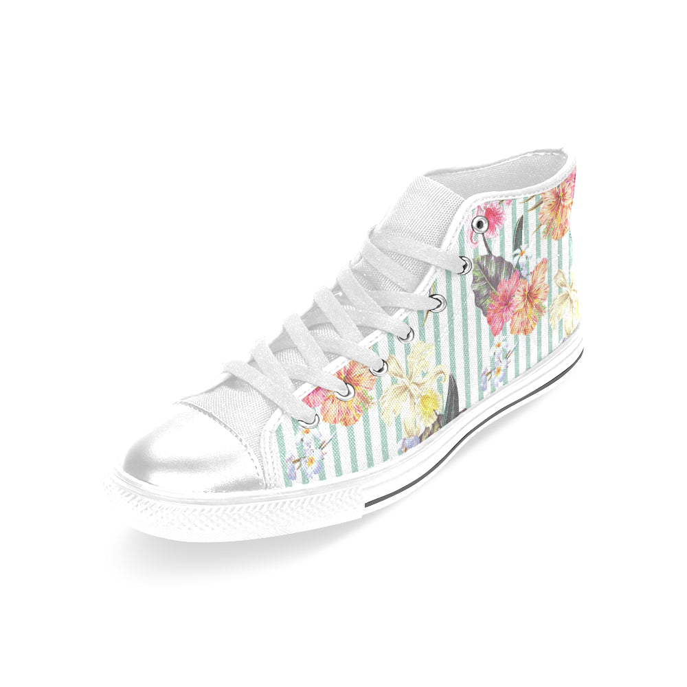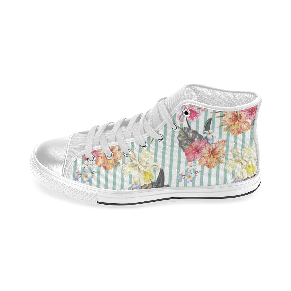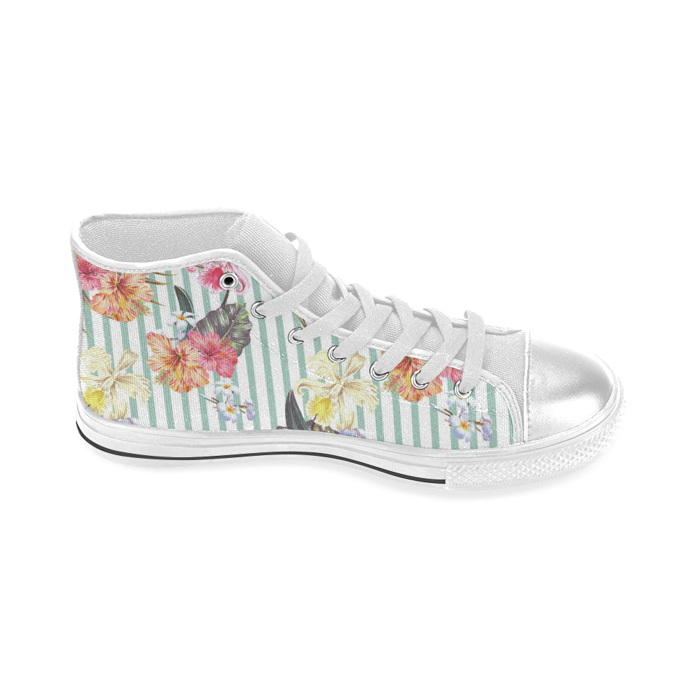 Colorful orchid flower pattern Women's High Top Canvas Shoes White