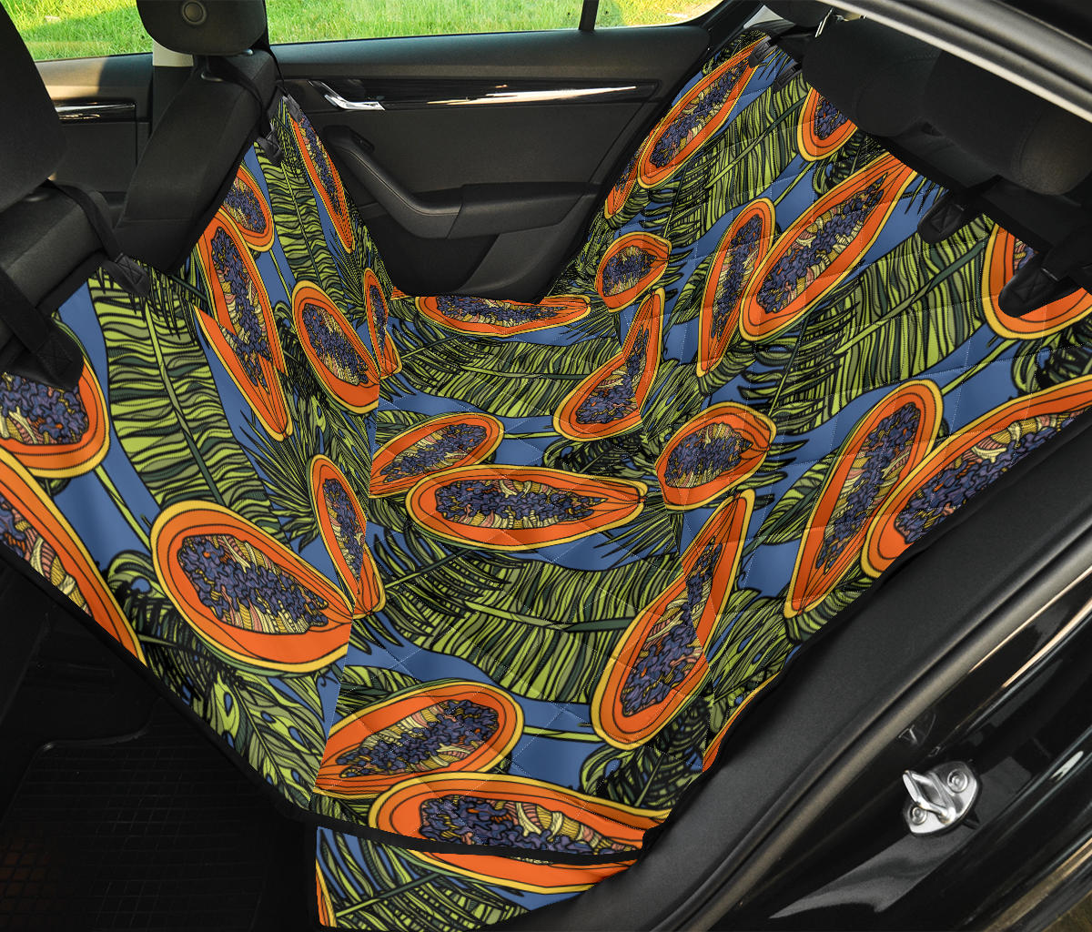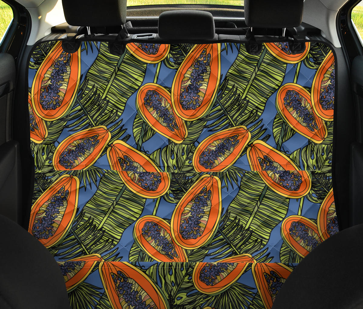 Colorful papaya tropical leaves Dog Car Seat Covers is a uniqued design and limited item. It made to order, hand printed, and sewn with love in our factory.