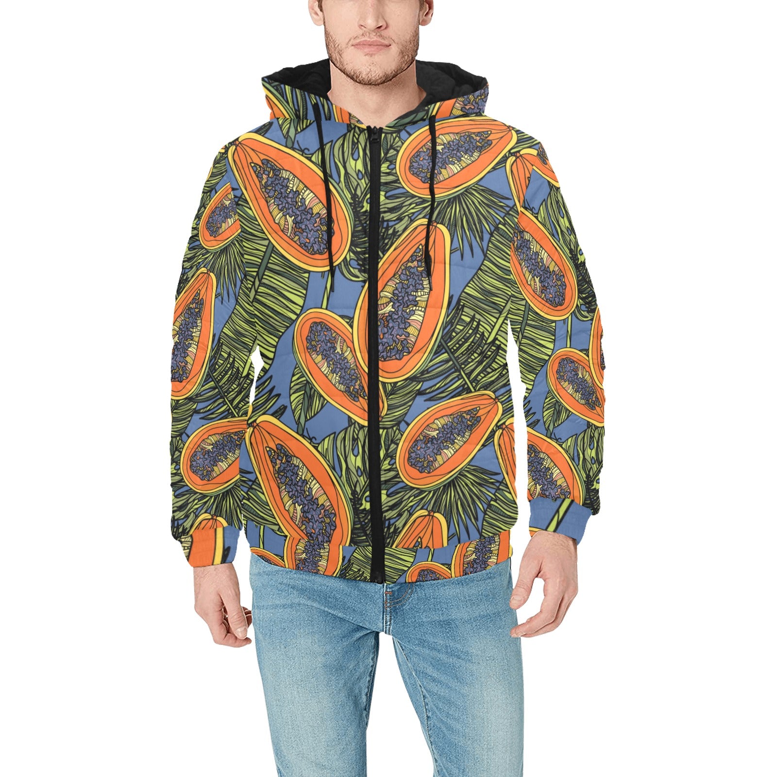 Colorful papaya tropical leaves Men's Padded Hooded Jacket