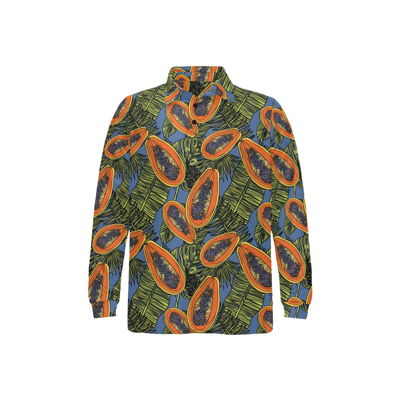 Colorful papaya tropical leaves Men's Long Sleeve Polo Shirt