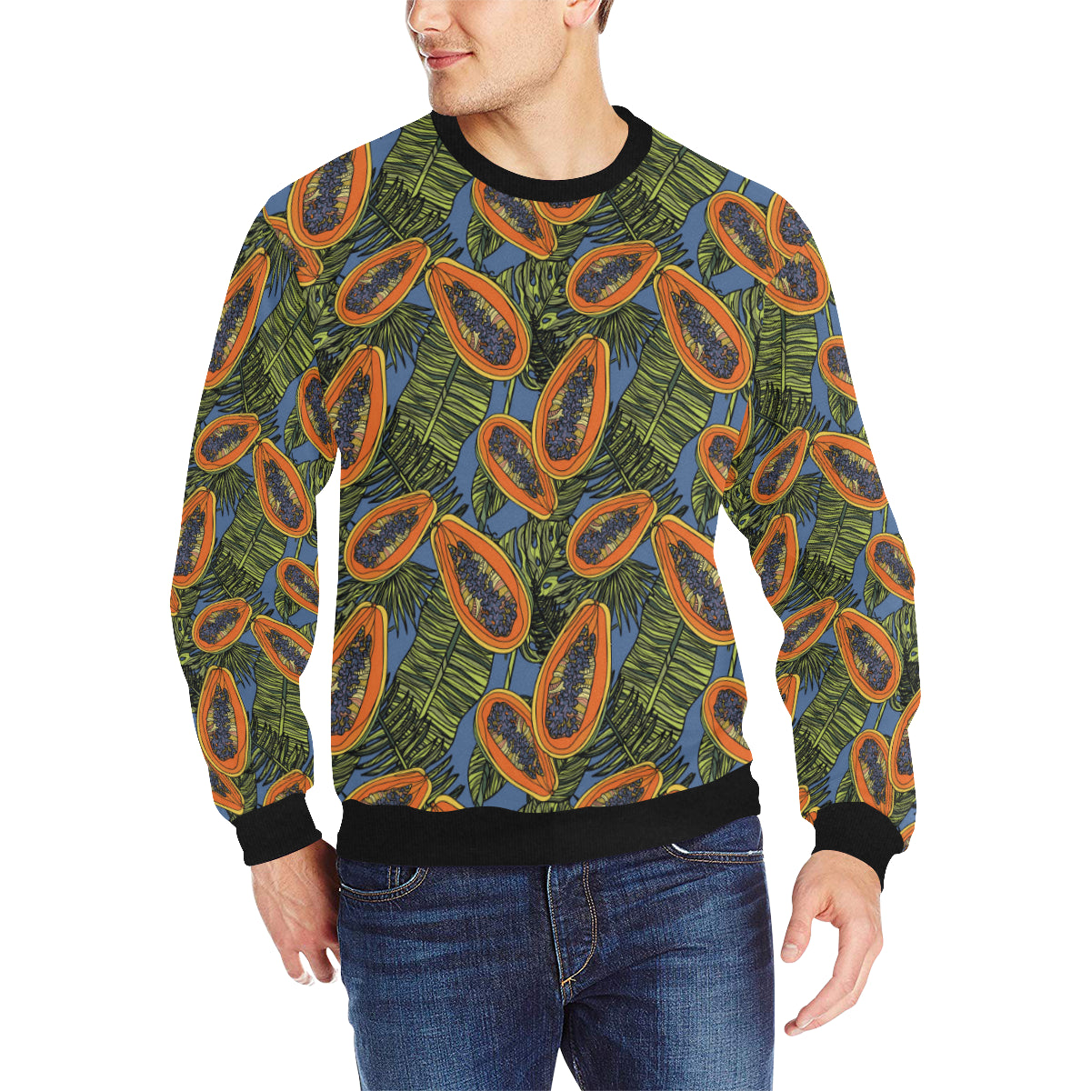 Colorful papaya tropical leaves Men's Crew Neck Sweatshirt is a uniqued design and limited item. It made to order, hand printed, and sewn with love in our factory.