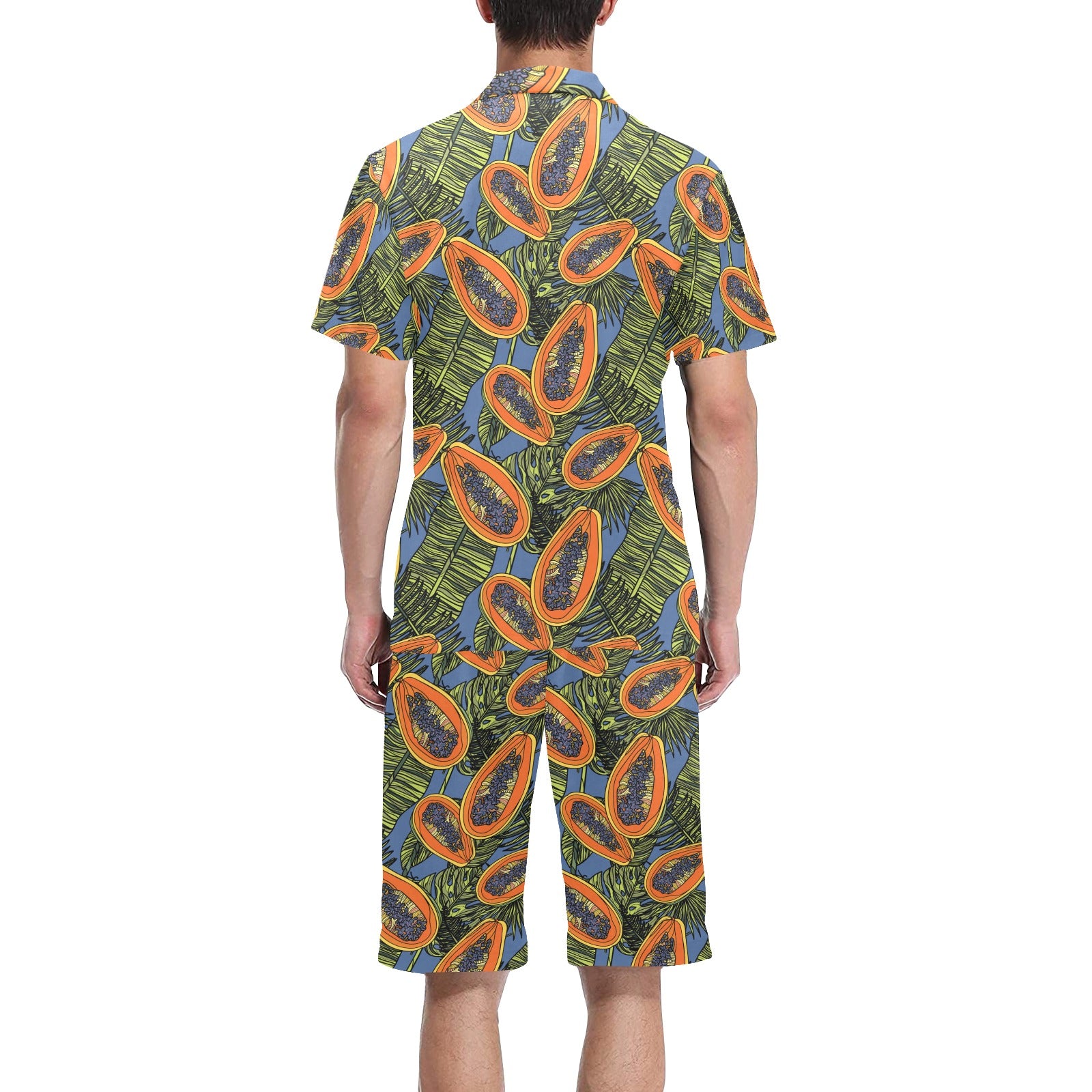 Colorful papaya tropical leaves Men's V-Neck Short Pajama Set