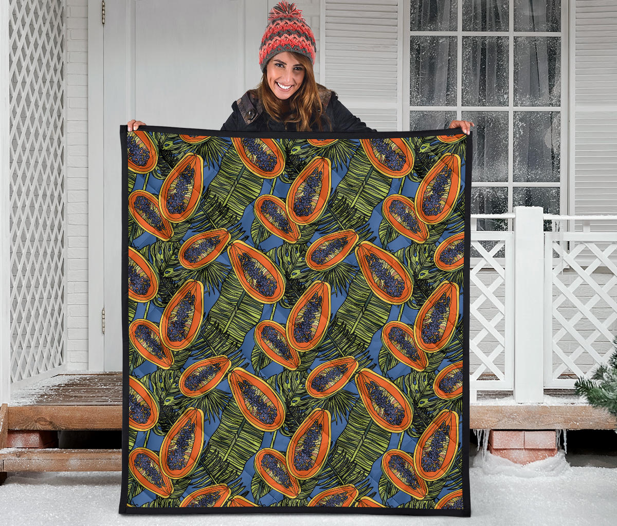 Colorful Papaya Tropical Leaves Premium Quilt is a uniqued design and limited item. It made to order, hand printed, and sewn with love in our factory.