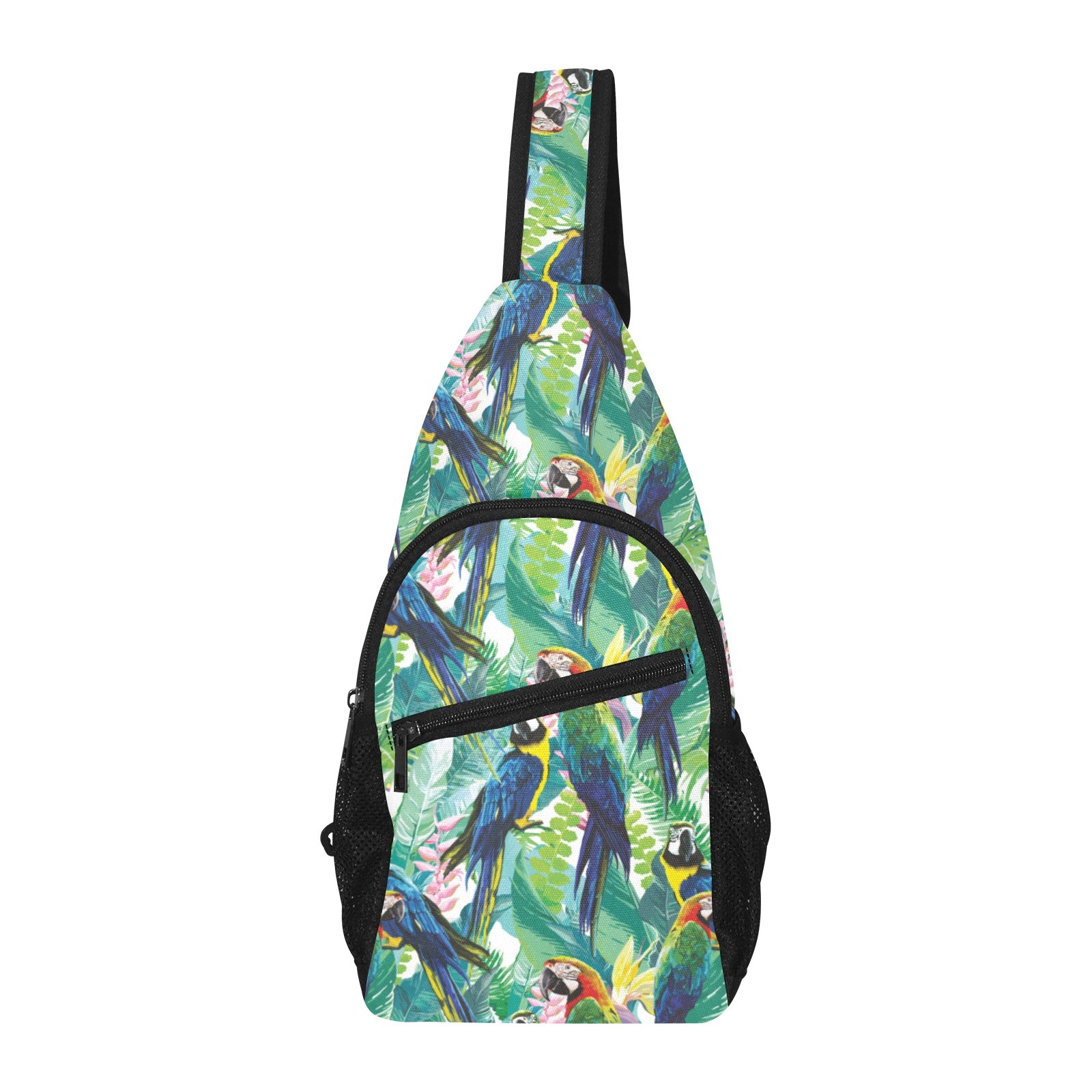 Colorful parrot exotic flower leaves All Over Print Chest Bag