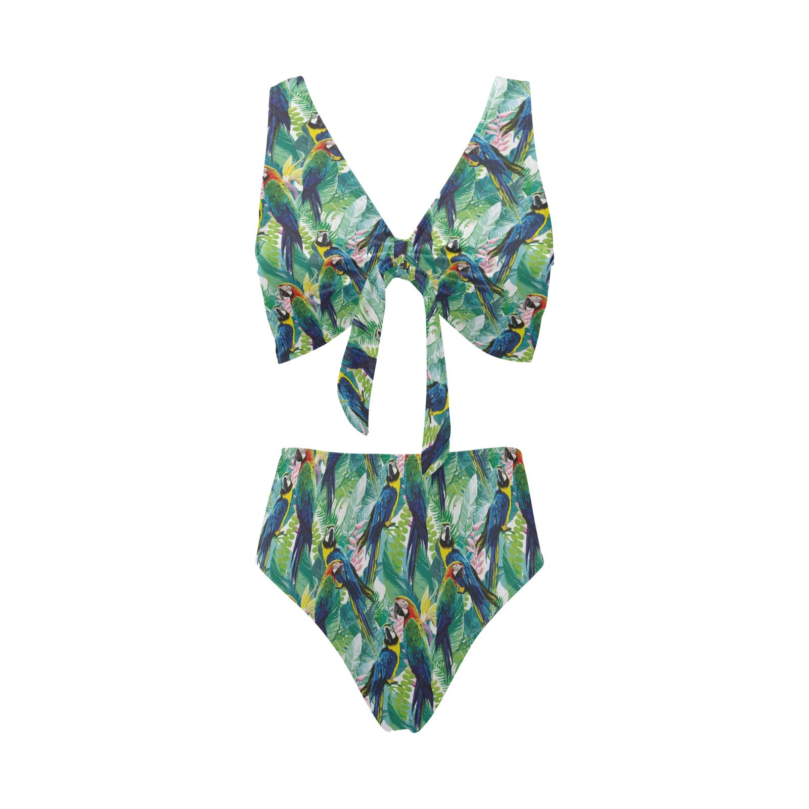 Colorful parrot exotic flower leaves Chest Bowknot High Waisted Bikini Swimsuit
