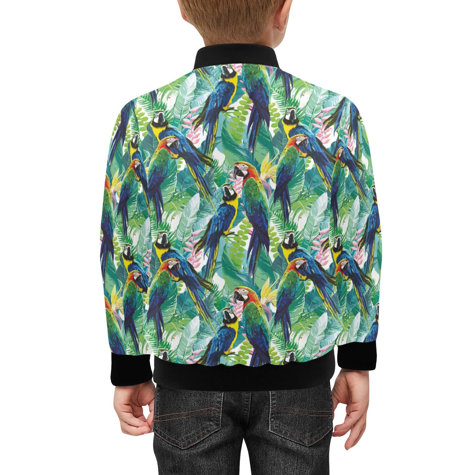 Colorful parrot exotic flower leaves Kids' Boys' Girls' Bomber Jacket