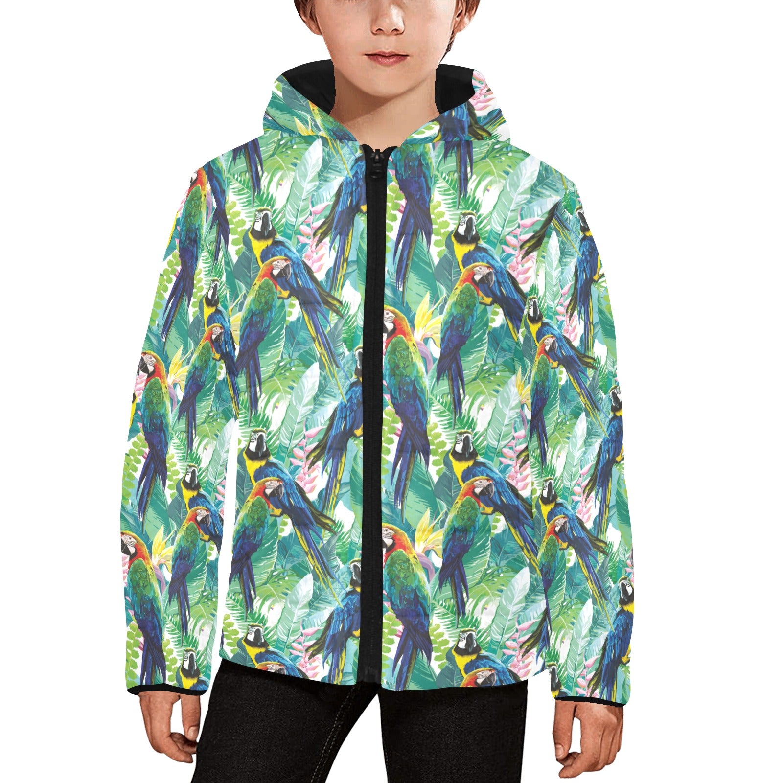 Colorful parrot exotic flower leaves Kids' Boys' Girls' Padded Hooded Jacket