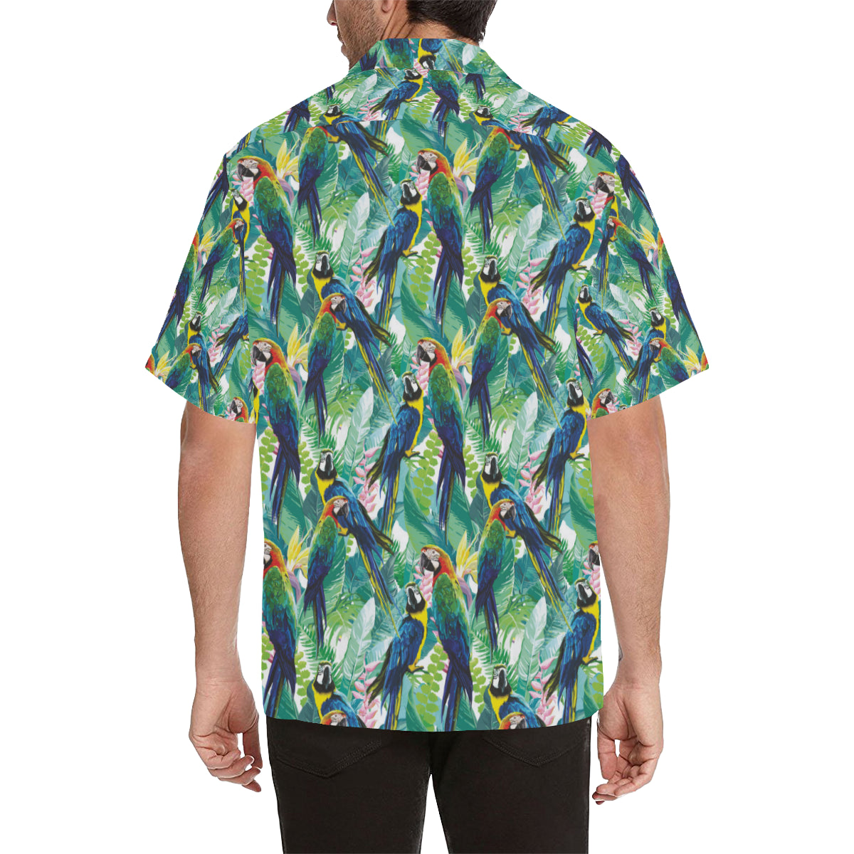 Colorful parrot exotic flower leaves Men's All Over Print Hawaiian Shirt