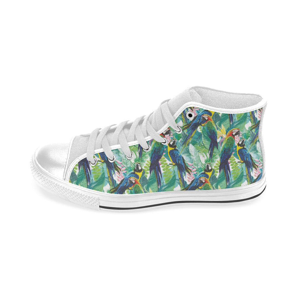 Colorful parrot exotic flower leaves Men's High Top Canvas Shoes White