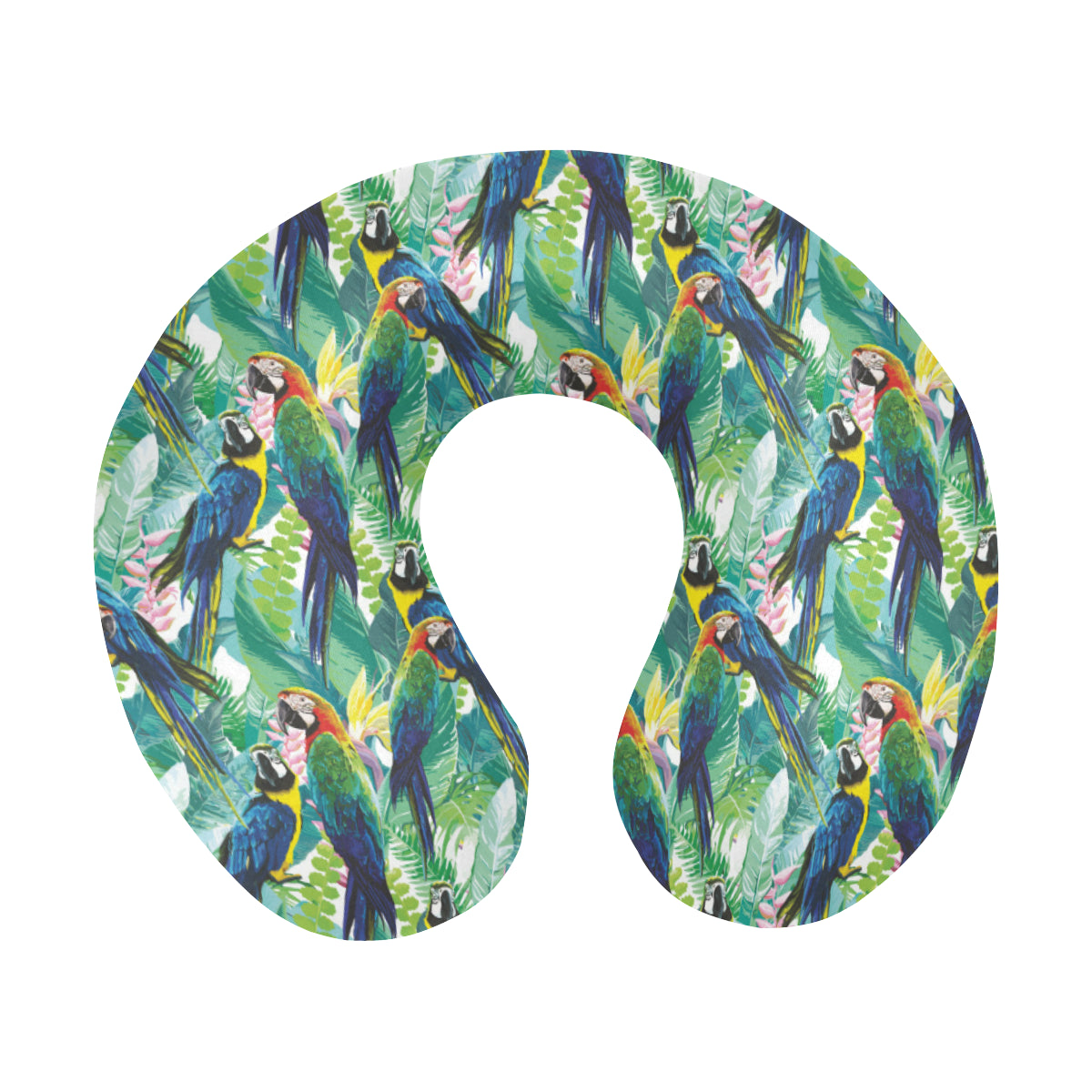 Colorful parrot exotic flower leaves U-Shaped Travel Neck Pillow