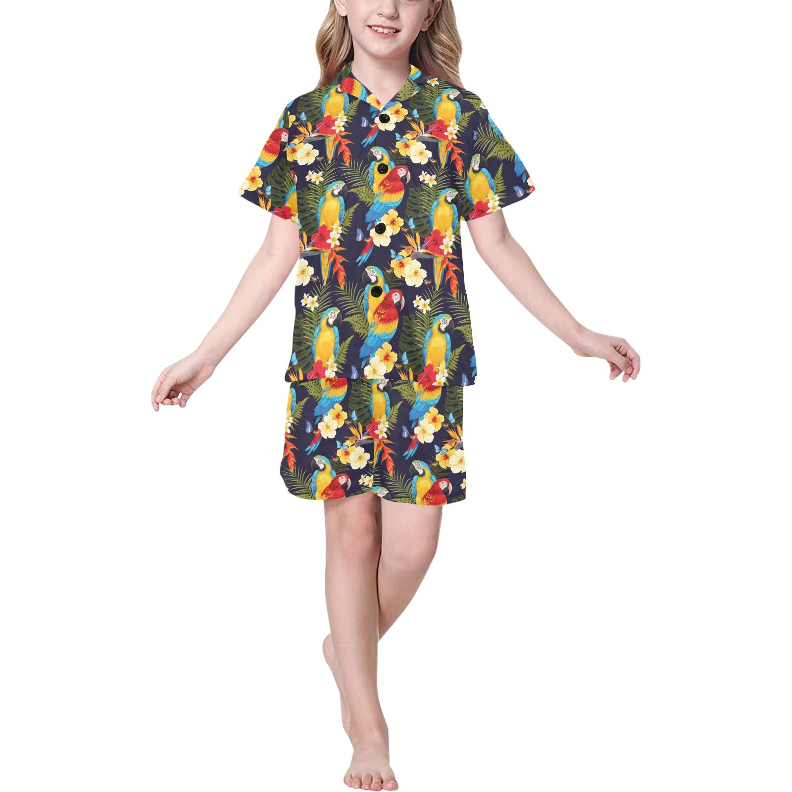 Colorful parrot flower pattern Kids' Boys' Girls' V-Neck Short Pajama Set