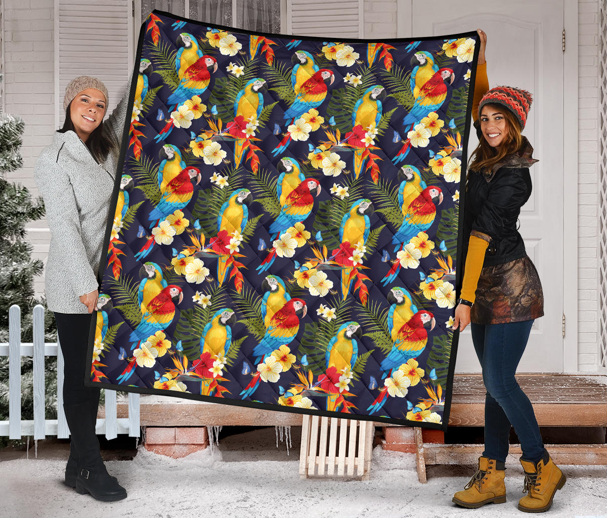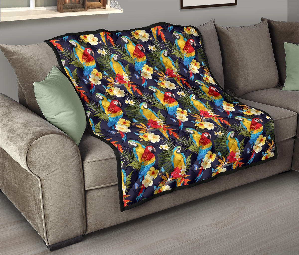 Colorful Parrot Flower Pattern Premium Quilt is a uniqued design and limited item. It made to order, hand printed, and sewn with love in our factory.