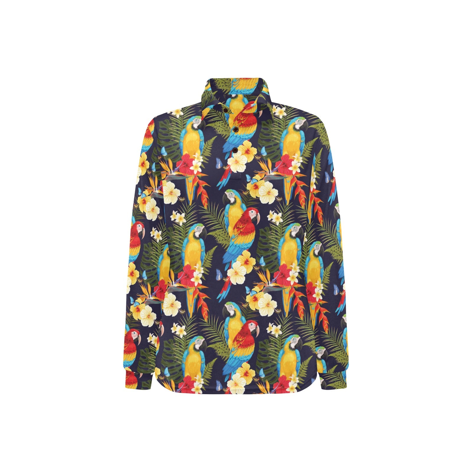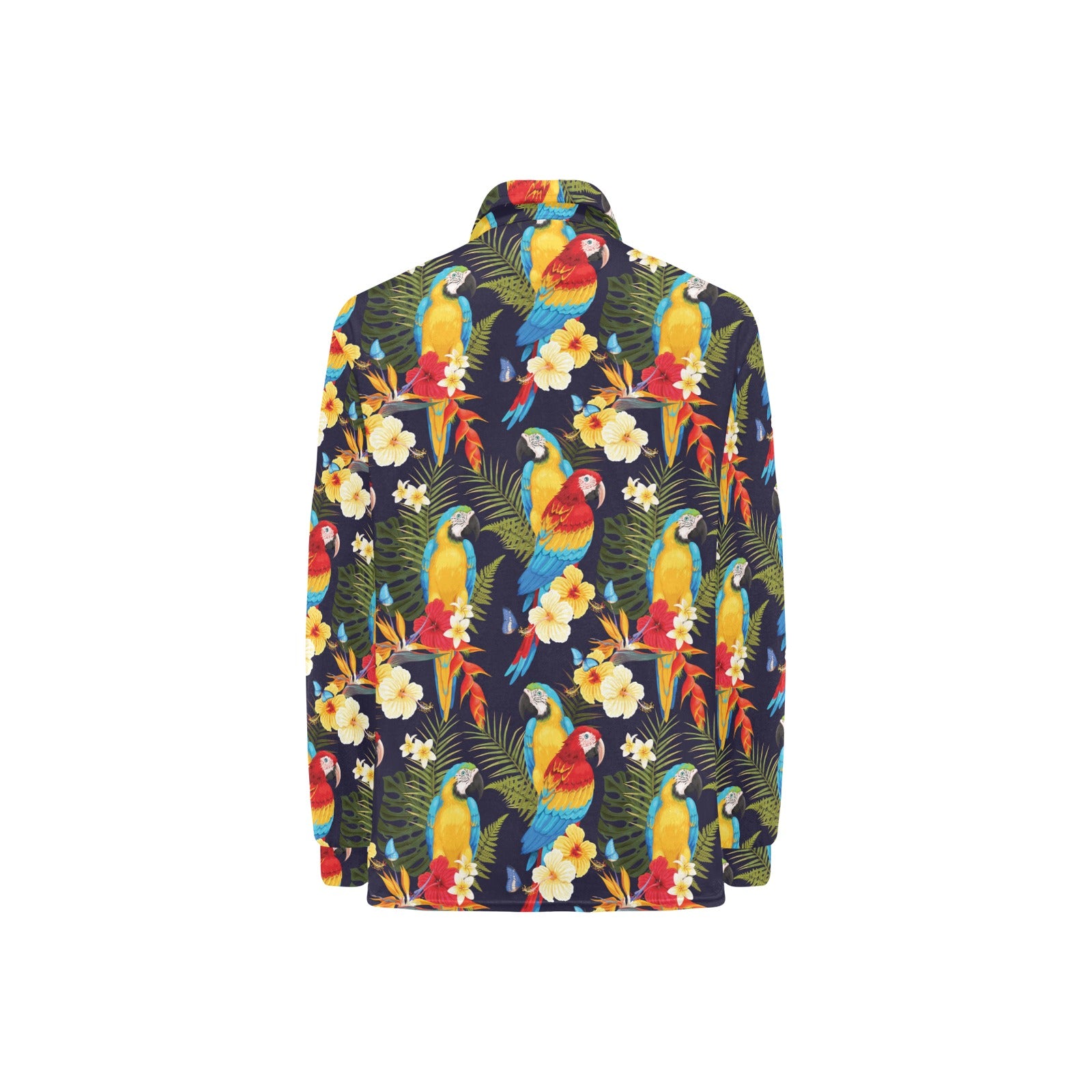Colorful parrot flower pattern Women's Long Sleeve Polo Shirt
