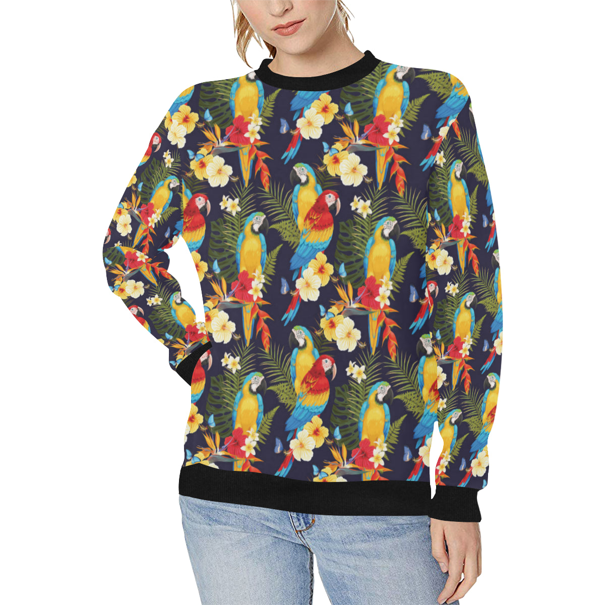 Colorful parrot flower pattern Women's Crew Neck Sweatshirt