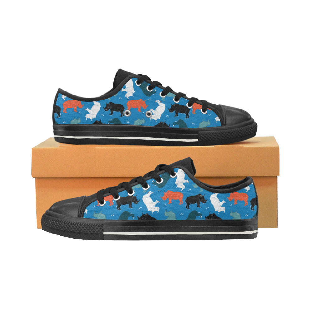 Colorful rhino pattern Men's Low Top Canvas Shoes Black