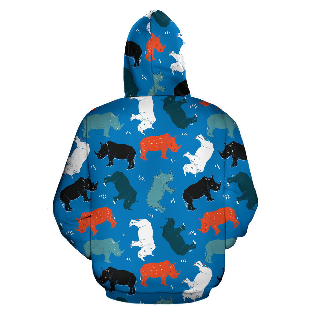 Colorful Rhino Pattern Men Women Pullover Hoodie