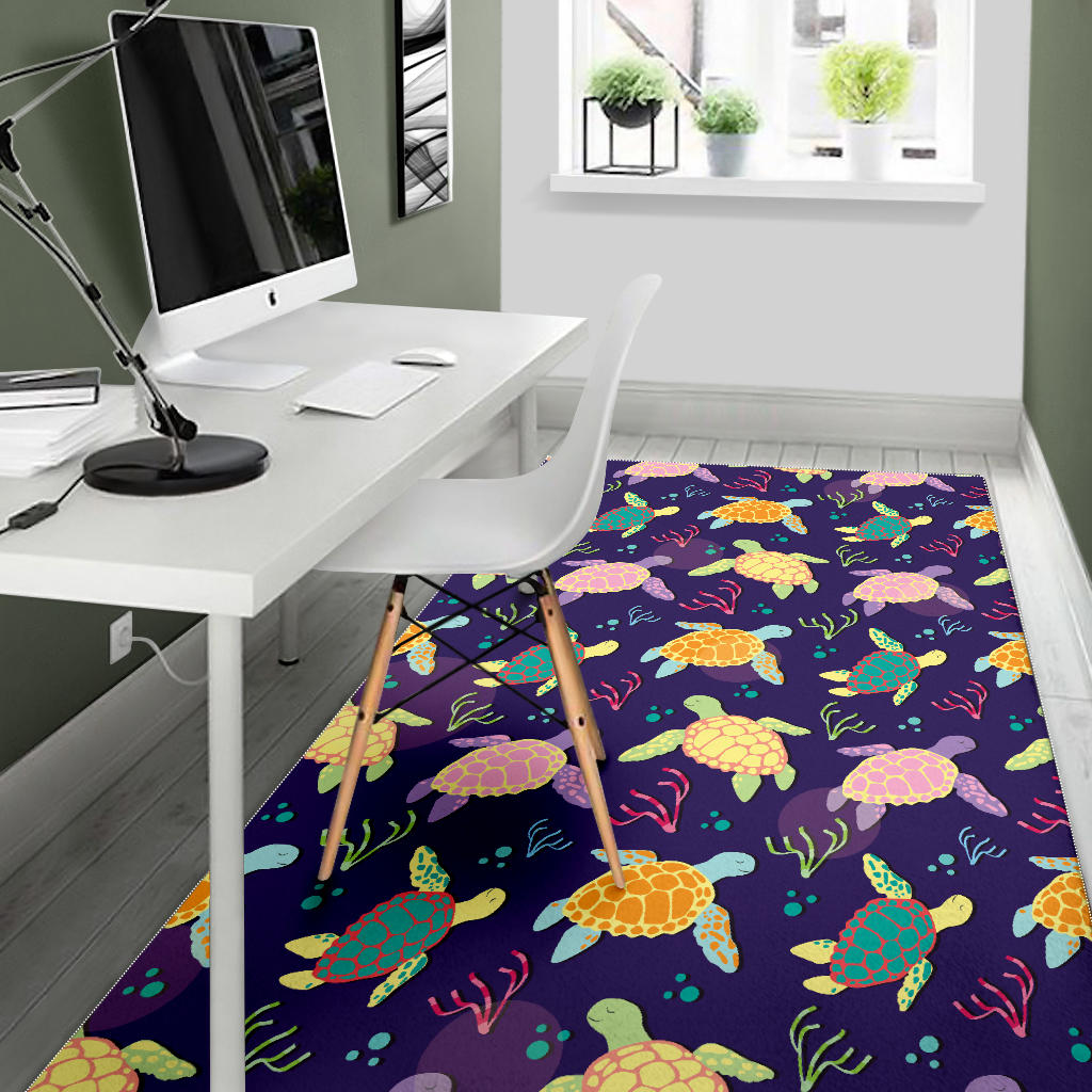 Colorful sea turtle pattern Area Rug is a uniqued design and limited item. It made to order, hand printed, and sewn with love in our factory.
