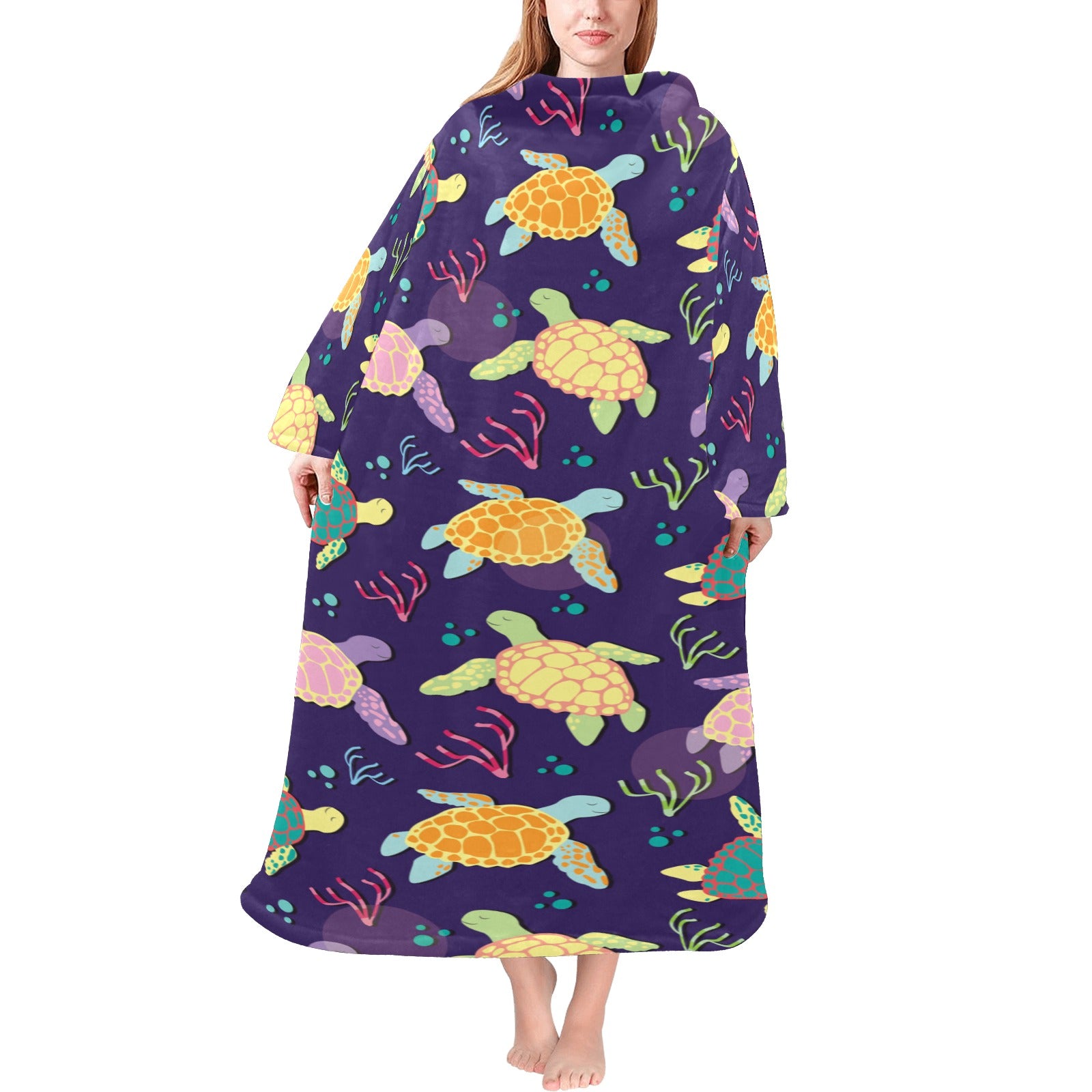 Colorful sea turtle pattern Blanket Robe with Sleeves