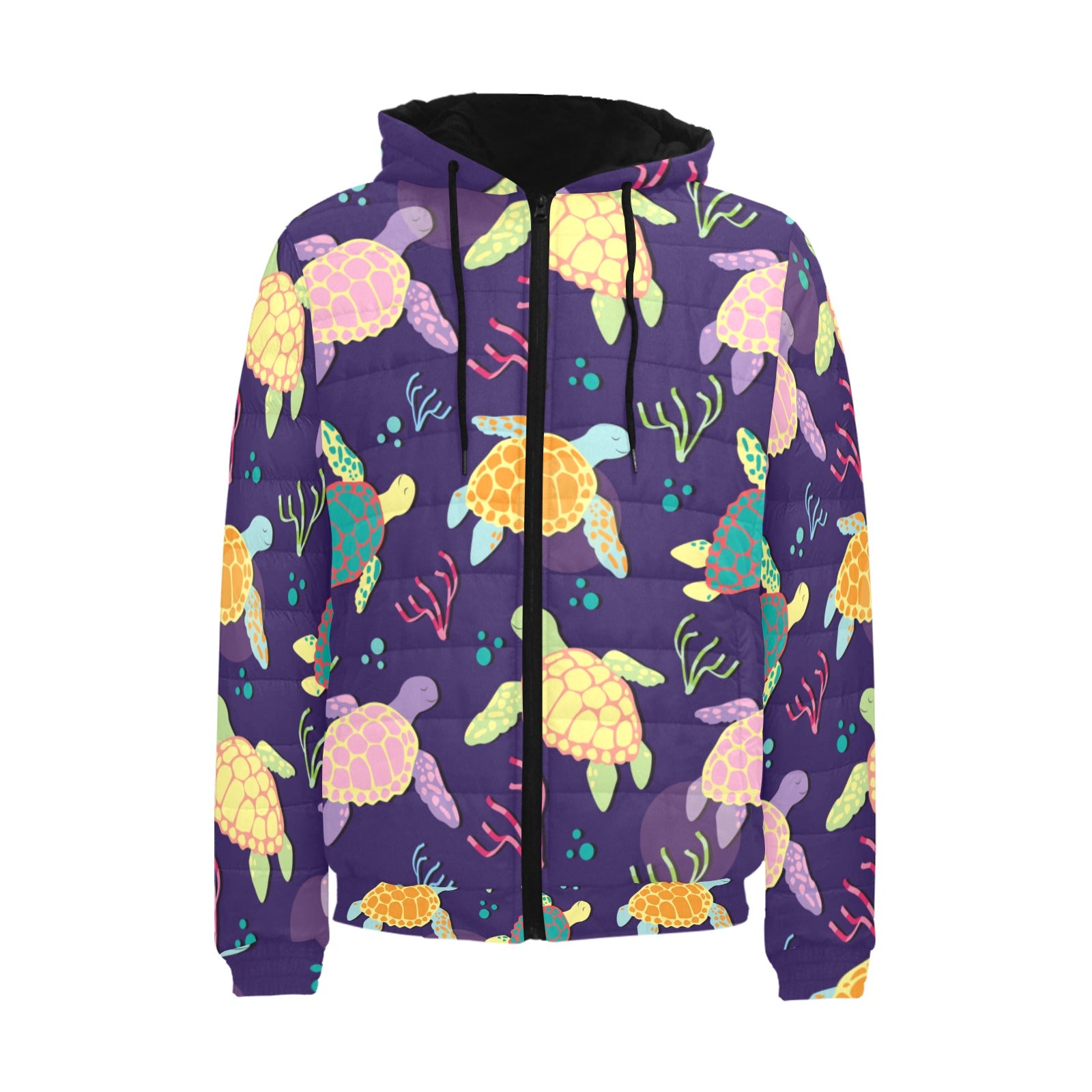 Colorful sea turtle pattern Men's Padded Hooded Jacket