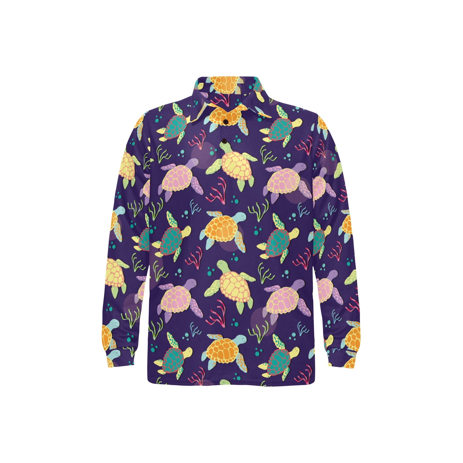 Colorful sea turtle pattern Men's Long Sleeve Polo Shirt