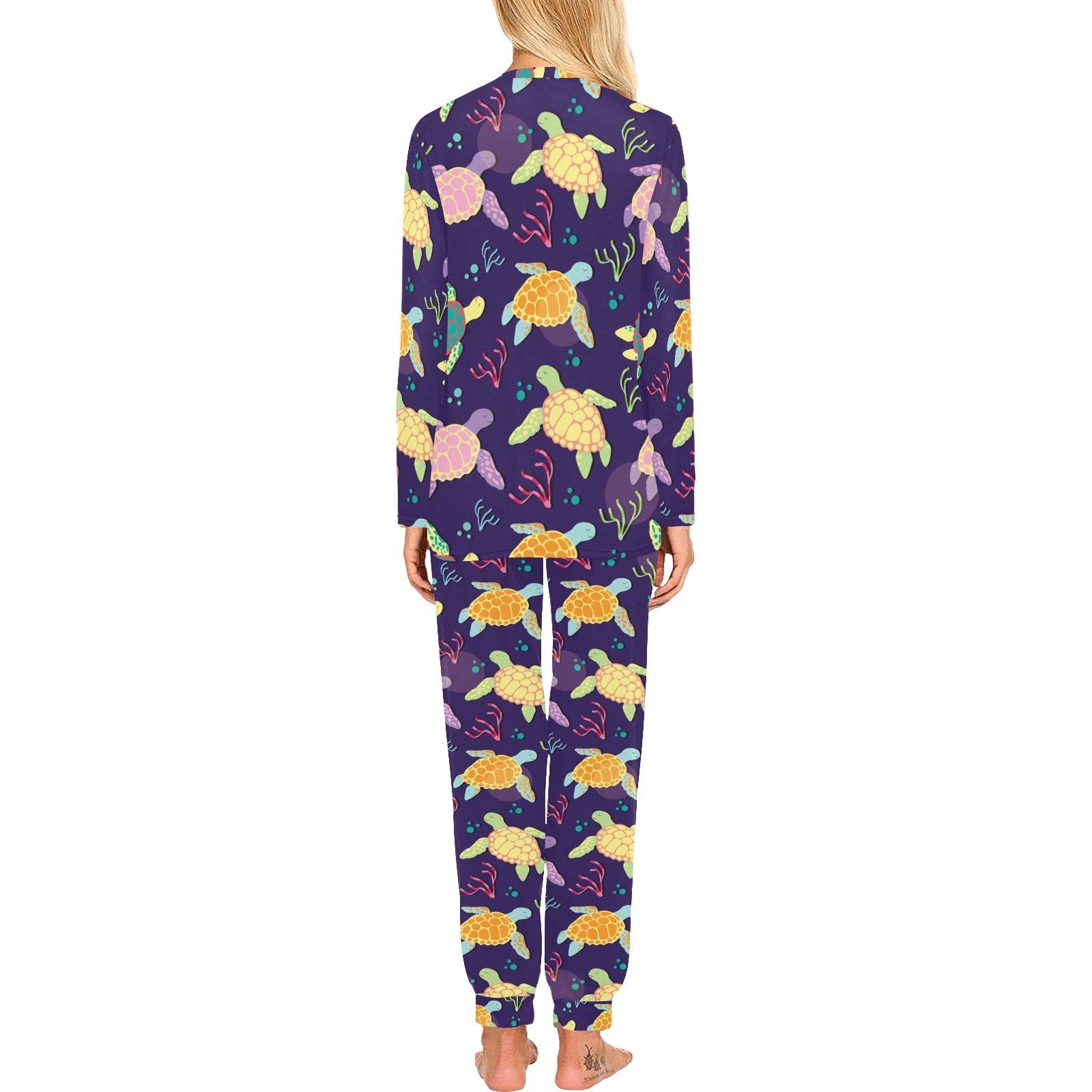 Colorful sea turtle pattern Women's All Over Print Pajama Set