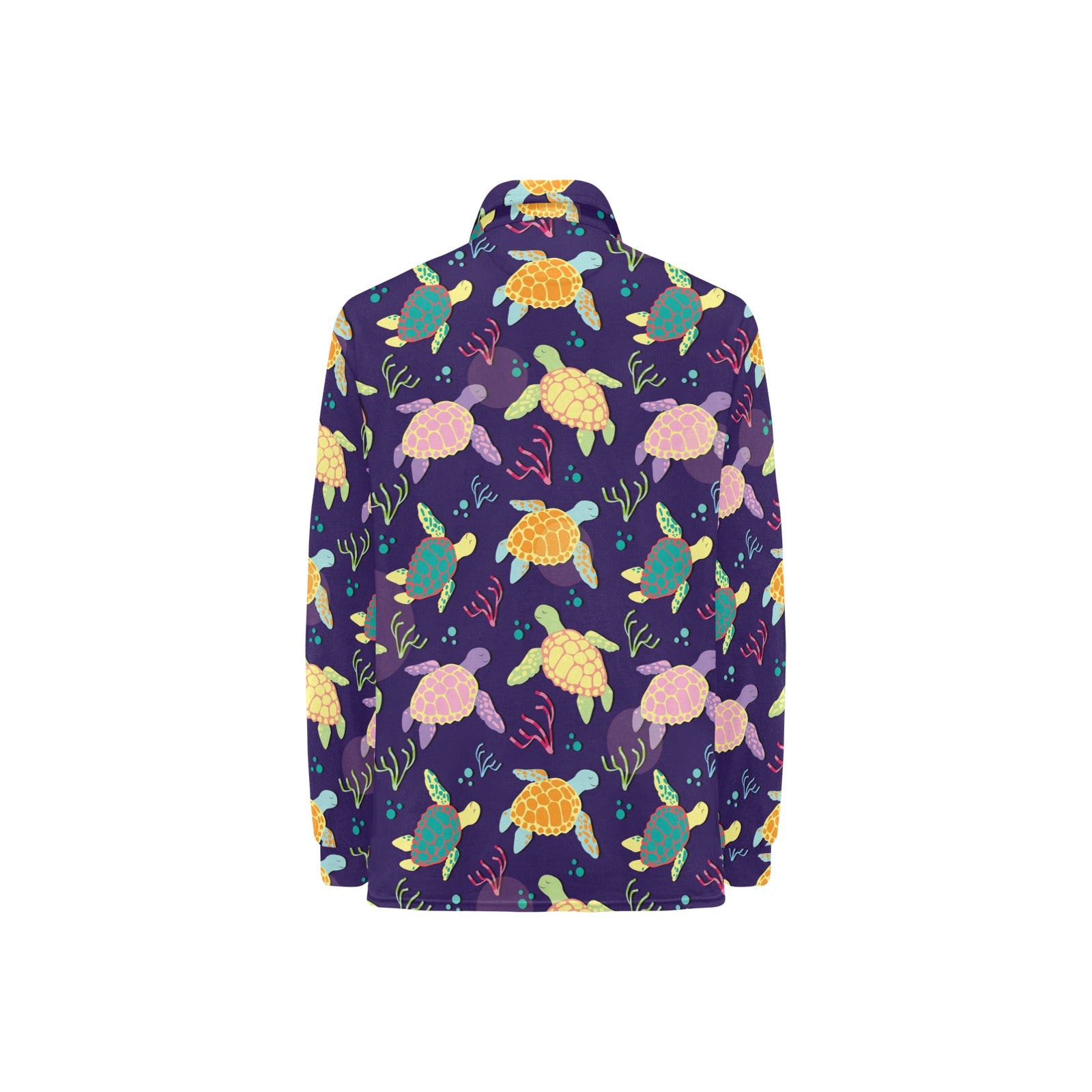 Colorful sea turtle pattern Women's Long Sleeve Polo Shirt