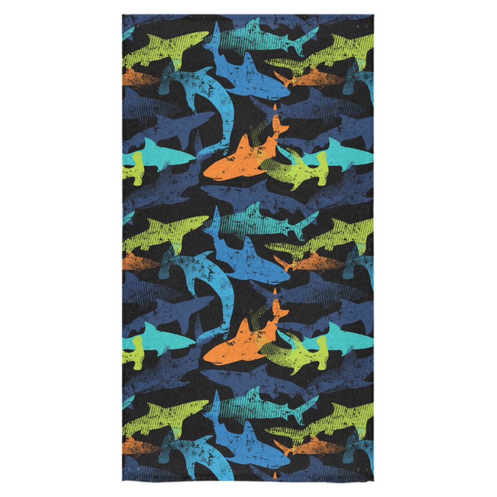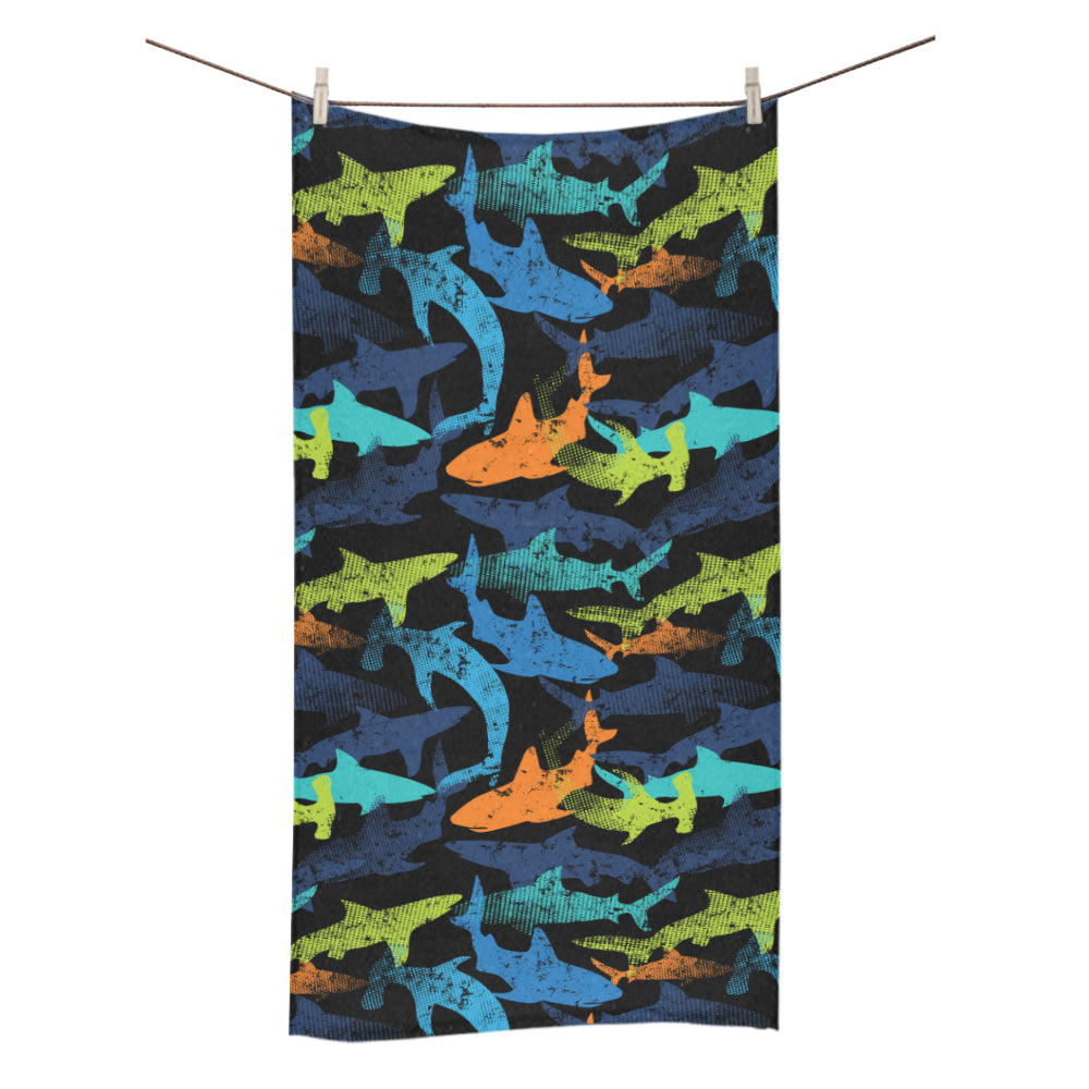 Colorful shark Bath Towel 30"x56" is a uniqued design and limited item. It made to order, hand printed, and sewn with love in our factory.
