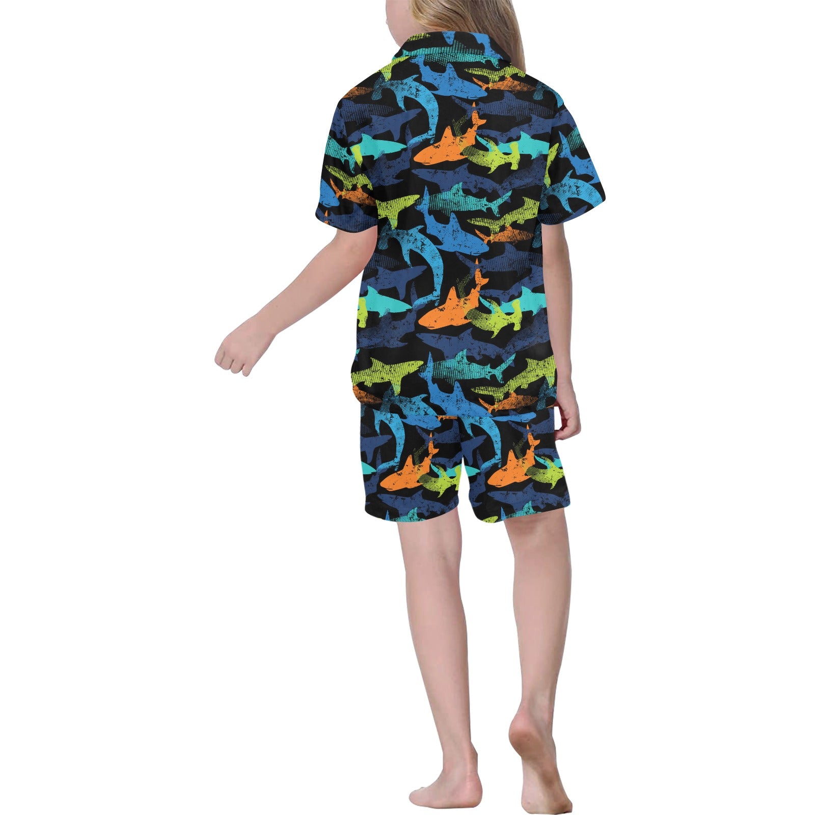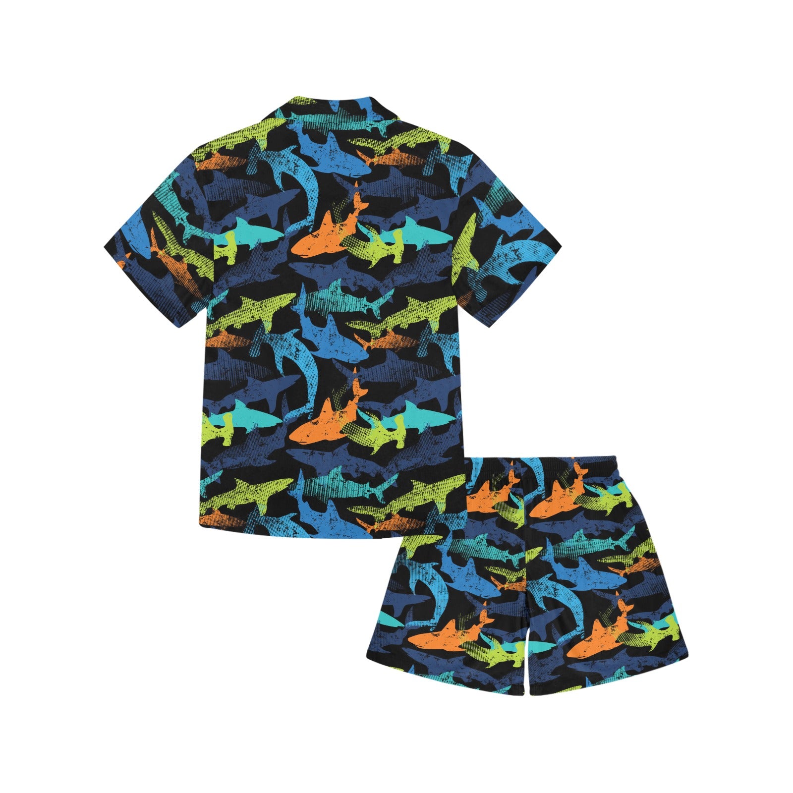 Colorful shark Kids' Boys' Girls' V-Neck Short Pajama Set
