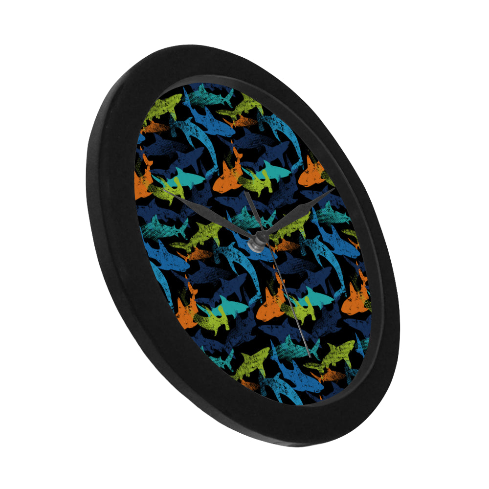 Colorful shark Elegant Black Wall Clock