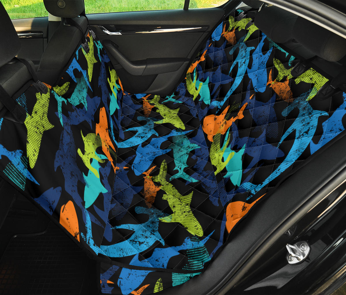 Colorful shark Dog Car Seat Covers is a uniqued design and limited item. It made to order, hand printed, and sewn with love in our factory.