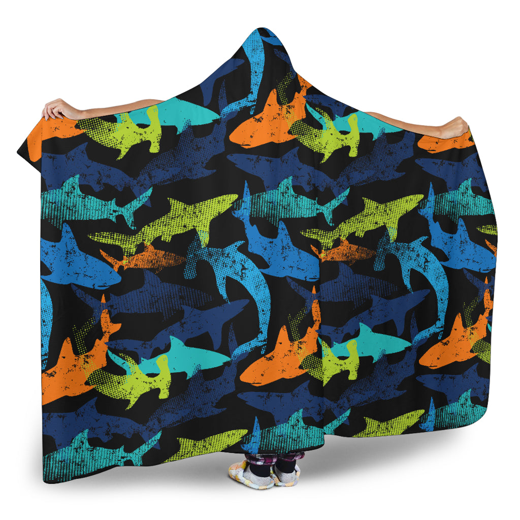 Colorful shark Hooded Blanket are custom-made-to-order and handcrafted to the highest quality standards.