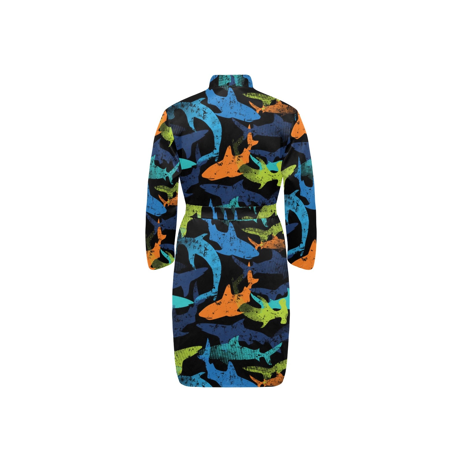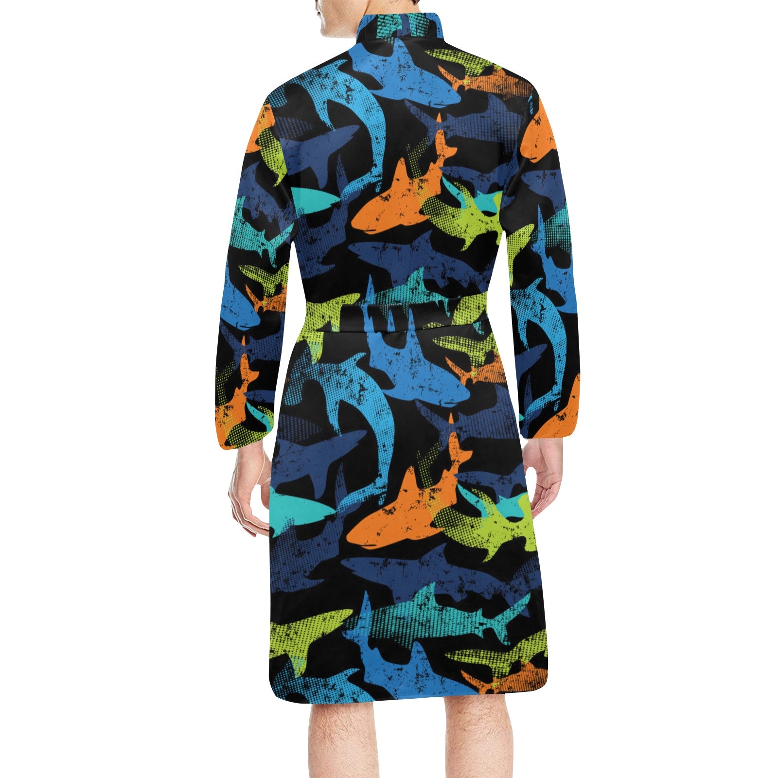 Colorful shark Men's Long Sleeve Belted Night Robe