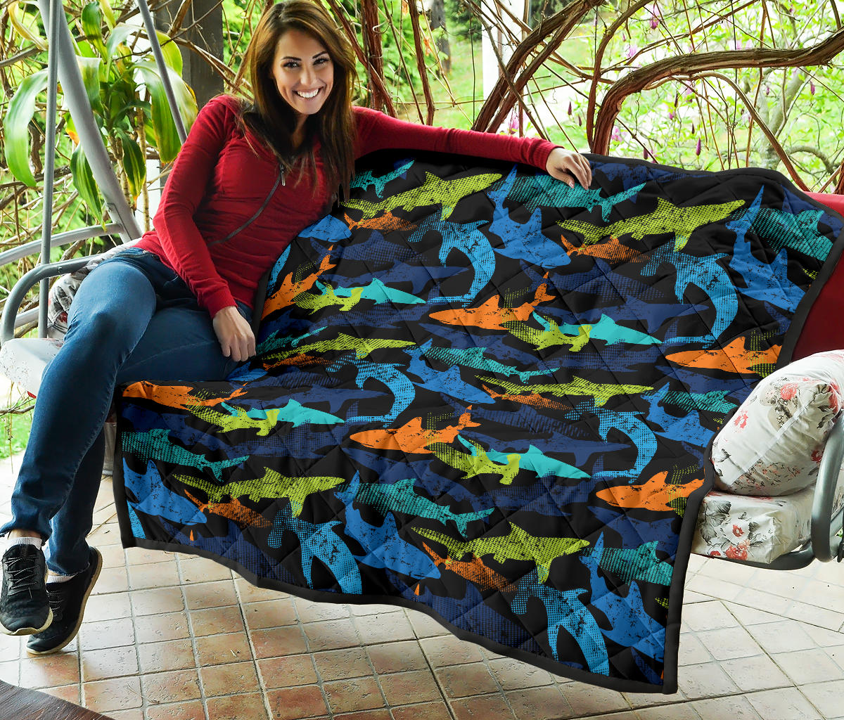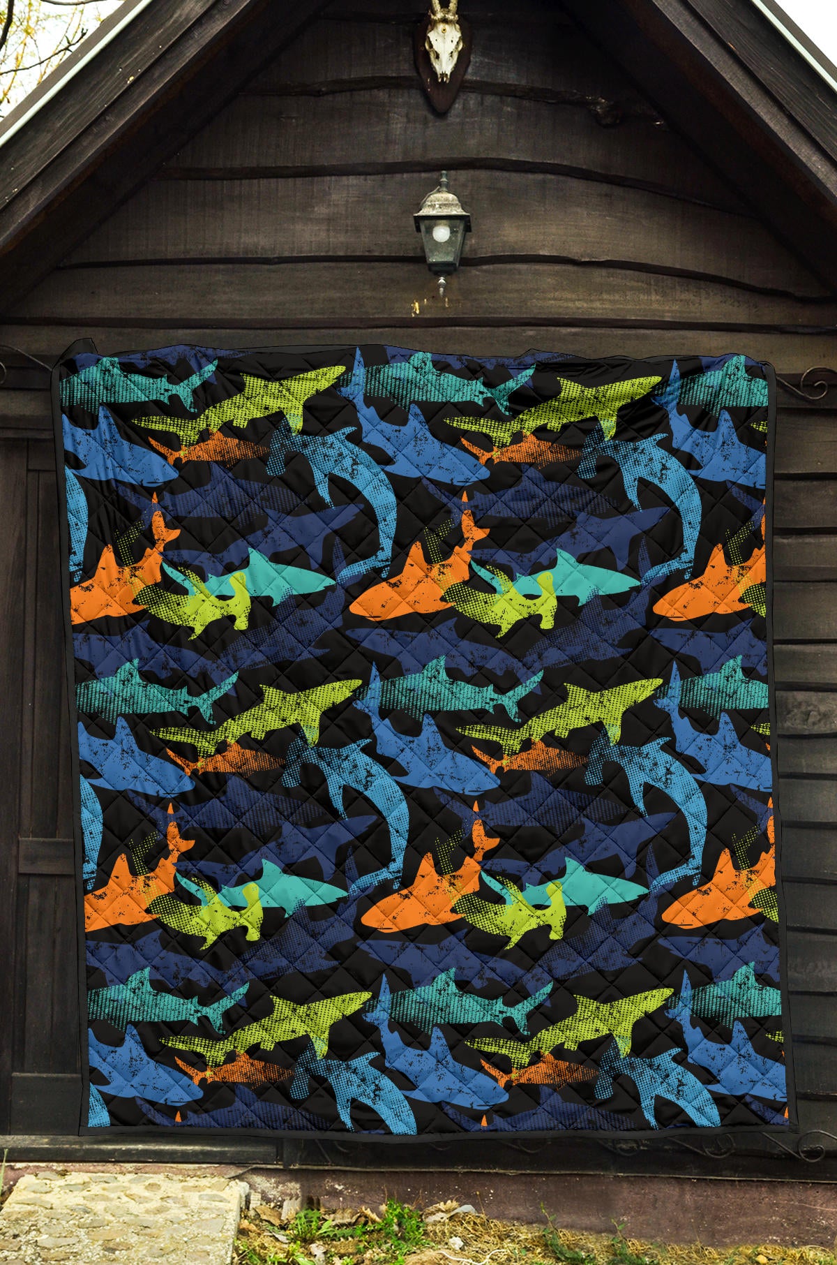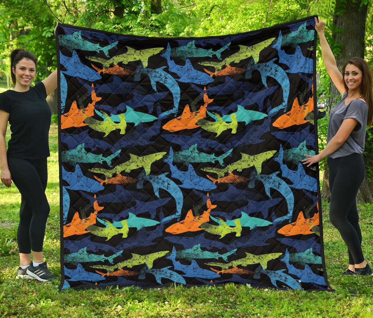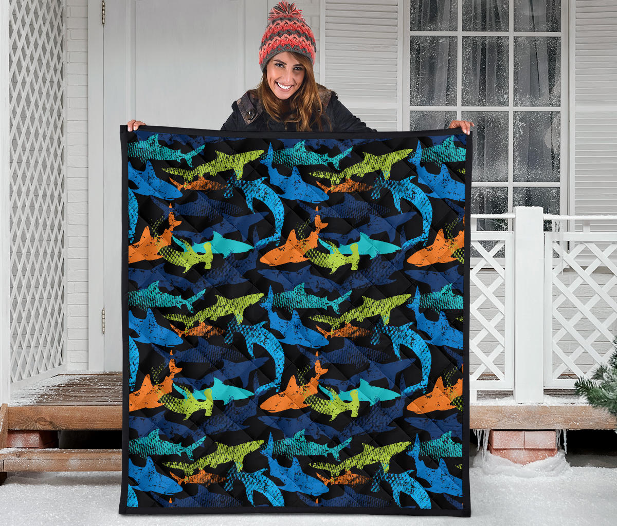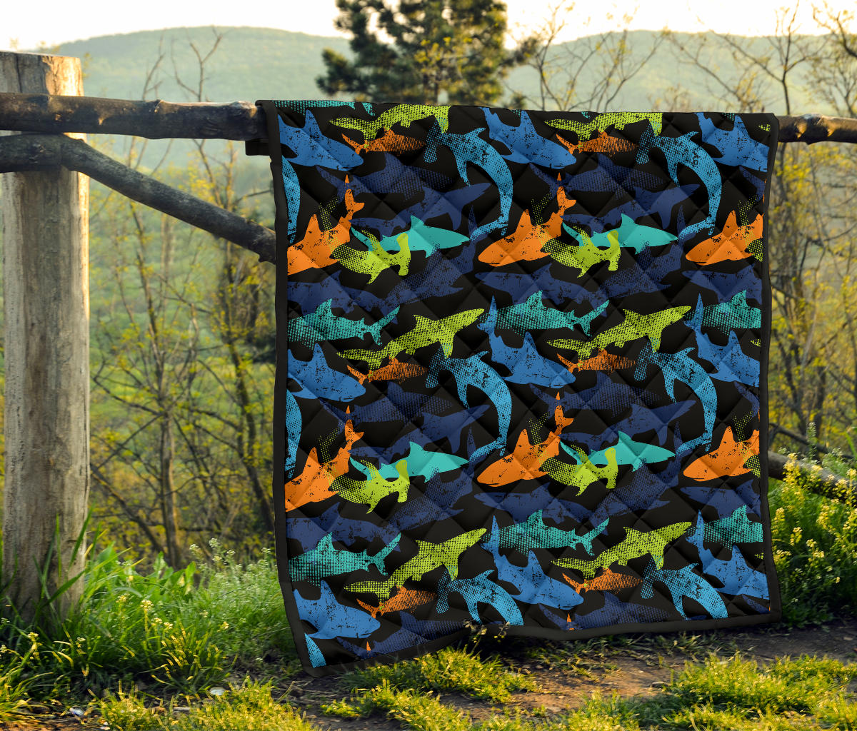Colorful Shark Premium Quilt is a uniqued design and limited item. It made to order, hand printed, and sewn with love in our factory.