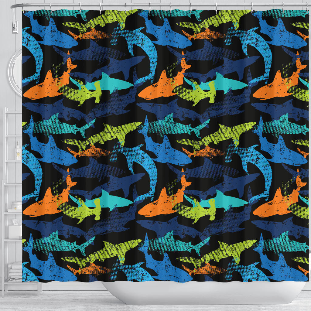 Colorful shark Shower Curtain is a uniqued design and limited item. It made to order, hand printed, and sewn with love in our factory.