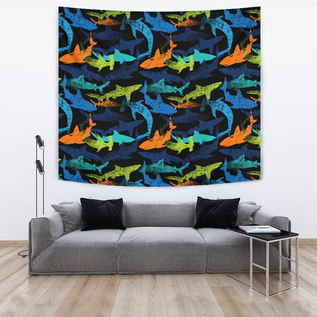 Colorful shark Tapestry is a uniqued design and limited item. It made to order, hand printed, and sewn with love in our factory.