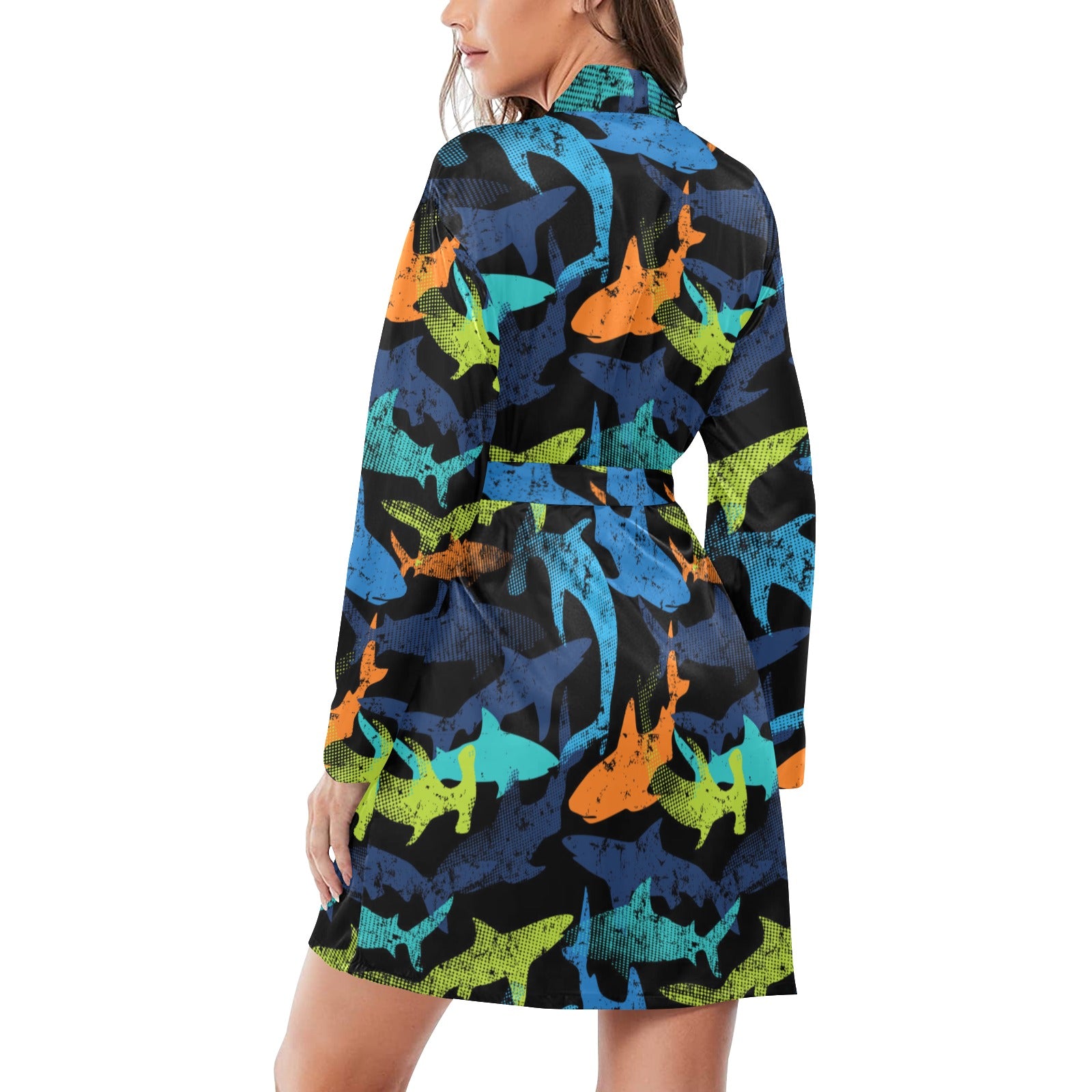 Colorful shark Women's Long Sleeve Belted Night Robe